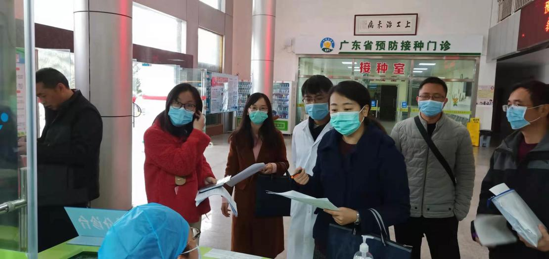 廖羽(右三)检查指导乳源县乡镇卫生院新冠疫苗紧急接种工作