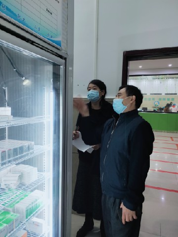 廖羽(左一)检查指导基层新冠疫苗紧急接种工作