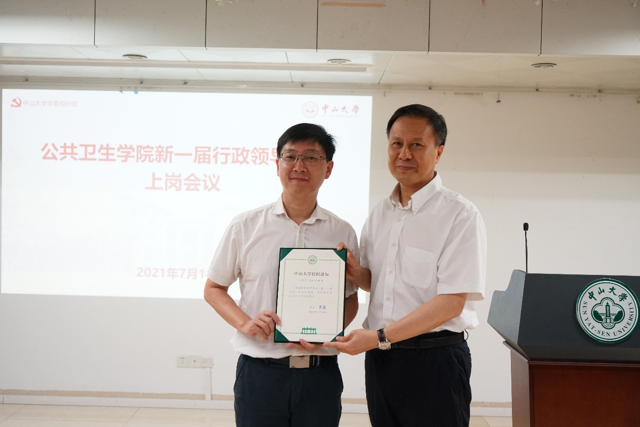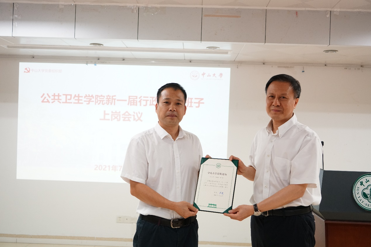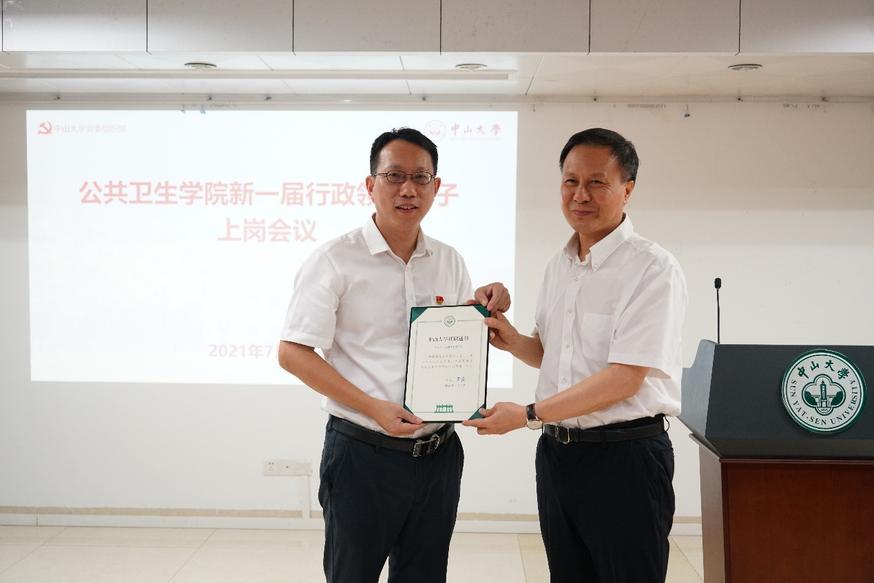肖海鹏常务副校长代表学校发言,他高度肯定了郝元涛教授为院长的上一届行政班子在任职期间为学院的建设和发展作出的贡献,对他们付出的辛勤努力表示衷心感谢,对全院职工对学院工作的支持配合表示衷心感谢!肖海鹏副校长指出,干部任命书不仅代表荣誉和组织的信任,还是责任和使命。新冠疫情为公共卫生学院的发展带来百年未遇的巨大机遇与挑战,新一届领导班子要带领全院师生,紧紧抓住发展机遇,敢于应对挑战,认真学习贯彻习近平总书记关于构建强大公共卫生体系和高水平公共卫生学院建设的系列讲话精神,奋勇拼搏,努力把学院建设成为高水平公共卫生学院。他强调,学院要创新机制体制,加强人才培养的改革,适应国家重大需求,充分利用粤港澳大湾区的区位优势,加大与yl88858永利集团的附属医院、医学院以及基层社区等实践基地的合作,凝心聚力,共谋发展。