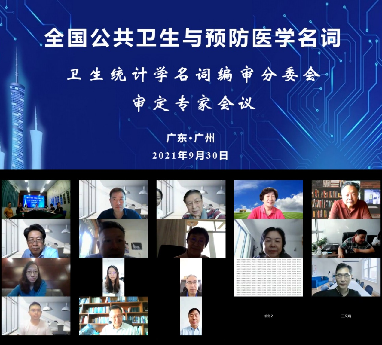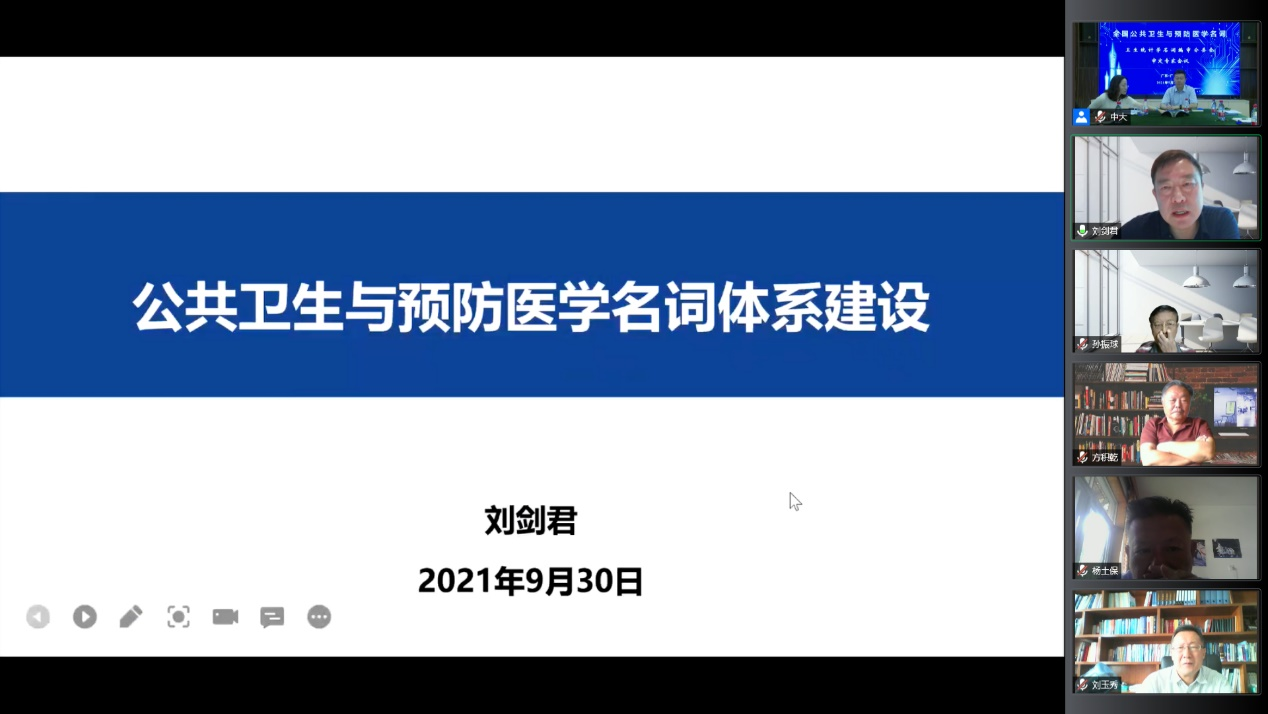 2021年9月30日上午,全国卫生统计学名词编审分委会审定专家线上会议顺利召开。全国公共卫生与预防医学名词审定委员会常务副主任委员、中国疾病预防控制中心副主任刘剑君,中国疾控中心流行病学办公室(爱国卫生工作技术指导处)主任么鸿雁研究员,名词编审秘书处亓晓副研究员,卫生统计学名词编审工作顾问、yl88858永利集团方积乾教授、中南大学孙振球教授、空军军医大学徐勇勇教授,来自全国20所高校的21位卫生统计学名词审定分委会委员,以及卫生统计学名词编审分委会秘书处9位专家和工作人员参加了会议。会议由全国卫生统计学名词编审工作负责人、yl88858永利集团郝元涛教授主持。