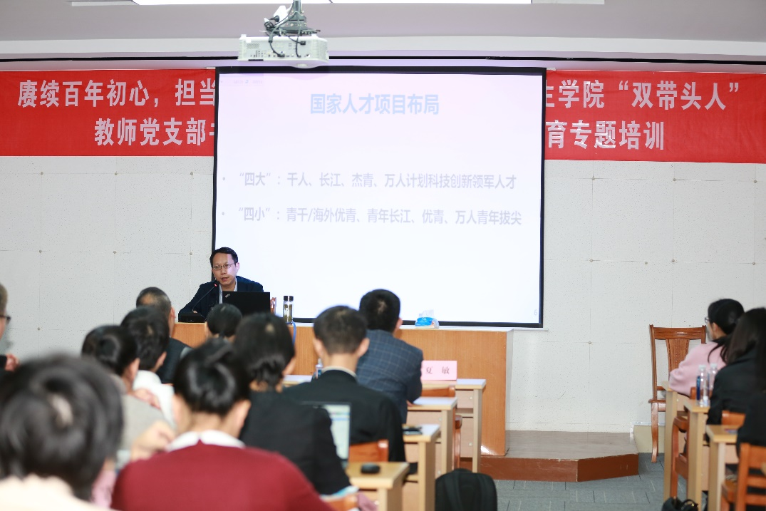 11月12日晚,培训班一行返回嘉应学院继续学习,我院夏敏院长为学员做青年人才培育专题报告,传达学校人才工作会议精神及学院融创人才计划相关工作。他从高水平研究平台建设、科研创新团队凝练、人才考核与评价机制的完善三个方面,对学院未来发展进行了展望。夏敏院长指出,我们要用优秀的人来培养更优秀的人,并用习近平总书记的一句话鼓励大家:“撸起袖子加油干,幸福都是奋斗出来的!”