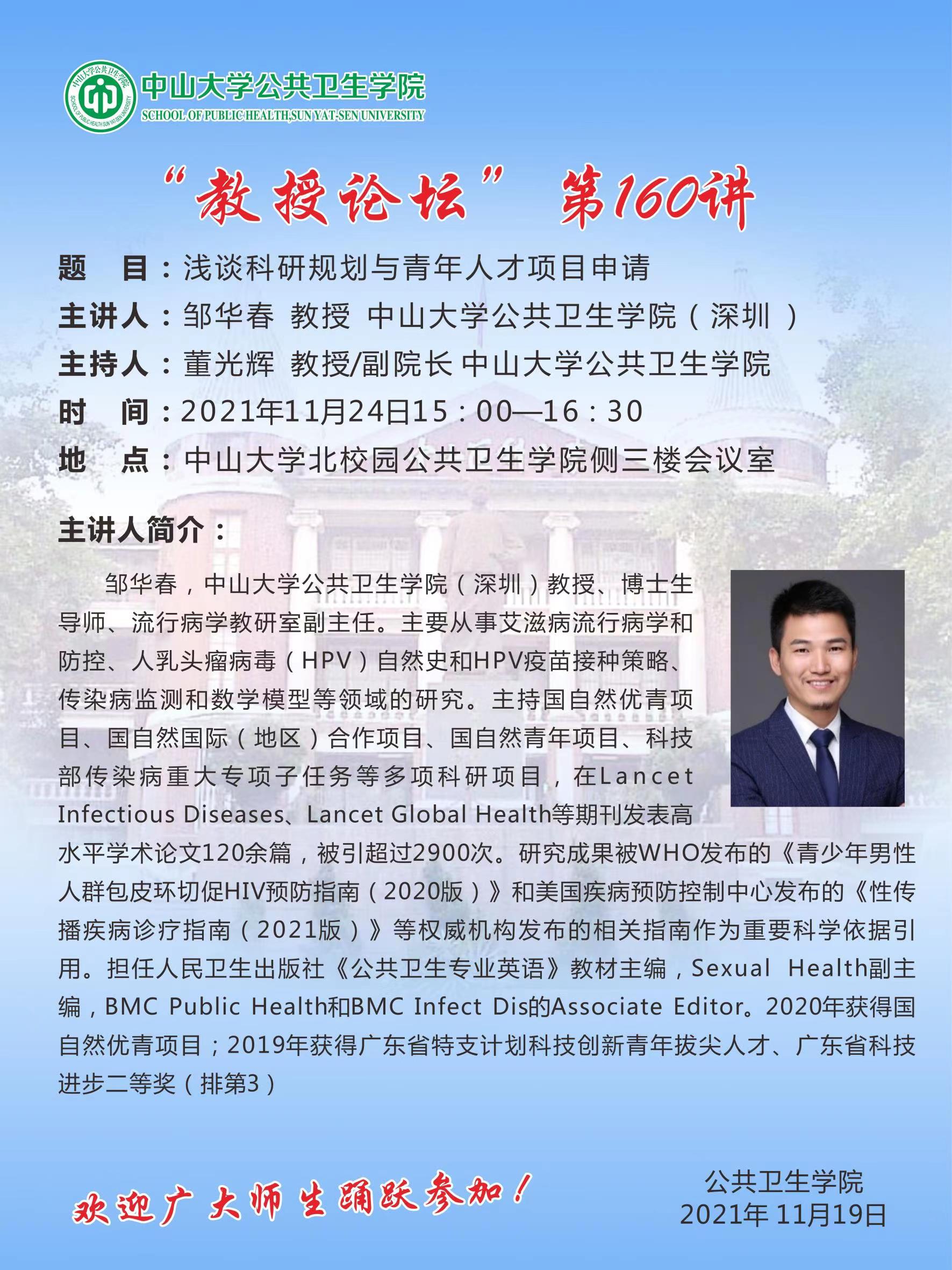“教授论坛”第160讲-浅谈科研规划与青年人才项目申请