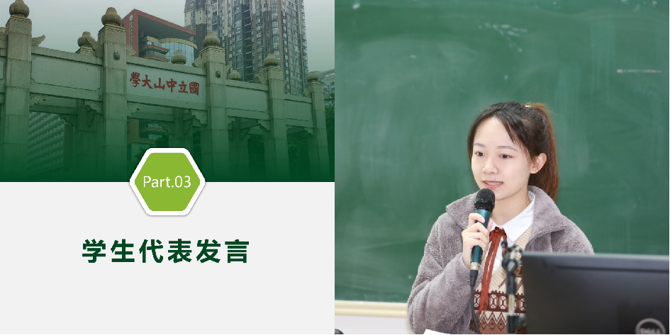 之后学生代表2019级本科生杨琳同学发言。她分享了自己对“全程导师制”观念转变和认识加深的过程,指出,本次全程导师制经学院优化升级后,为同学们提供了更多的学习机会。她代表全体学生承诺在参与全程导师制培养过程中将做到以下三点:一要珍惜机会,把握机遇;二要树立目标,有的放矢;三要坚持不懈,砥砺奋进。