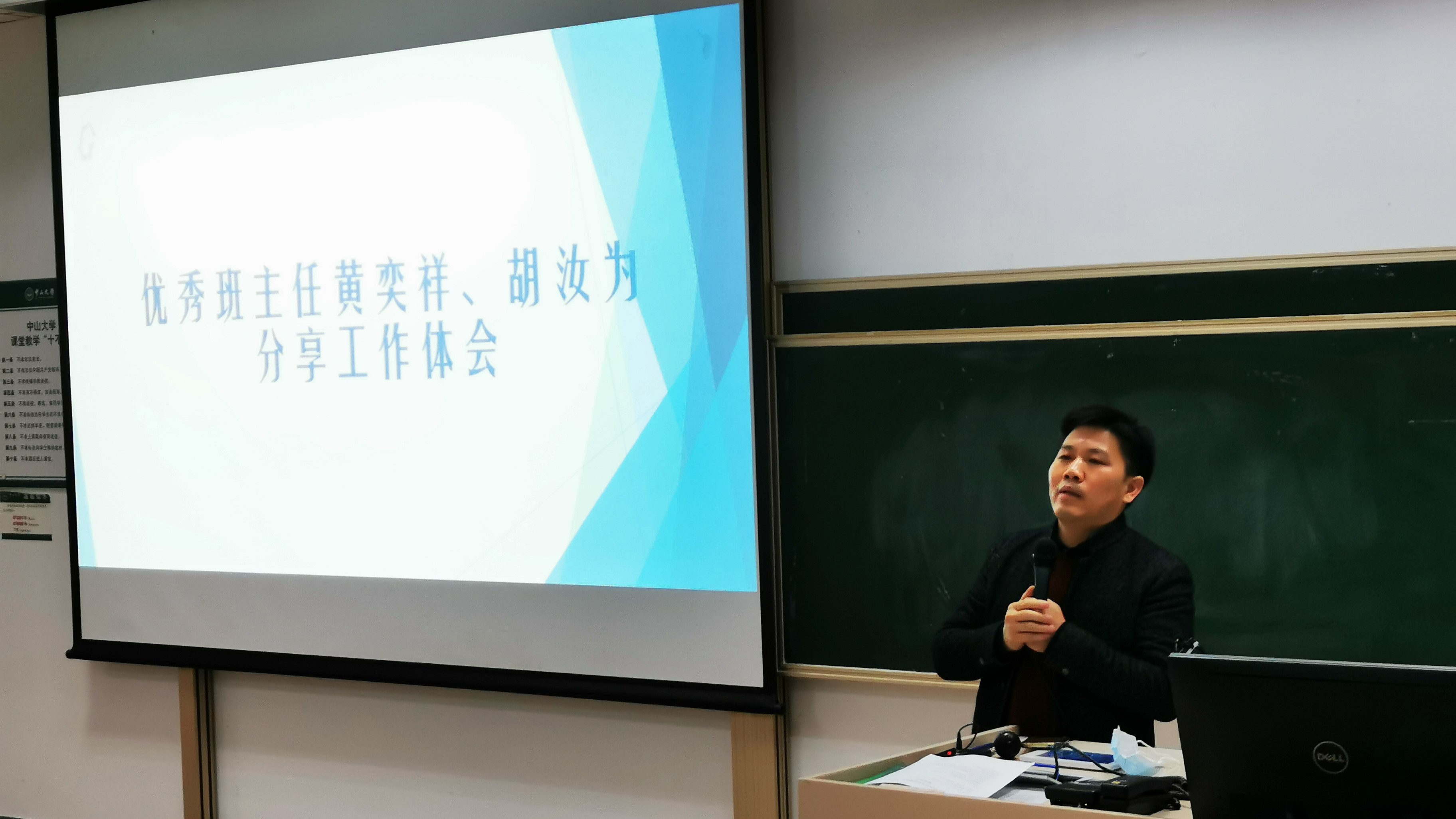 作为2020年优秀班主任代表的黄奕祥老师也与大家分享班主任工作体会。黄老师提出,作为一名班主任,需要经常思考如何培养学生,以学生为本,从学生的角度思考问题。同时结合实例分享如何践行“心、情、行”的理念。随后2020年优秀班主任胡汝为老师也通过微视频与大家分享班主任的工作心得。两位优秀班主任的分享为班主任们更好的开展班主任工作和班级建设提供了很好的思路和借鉴经验。