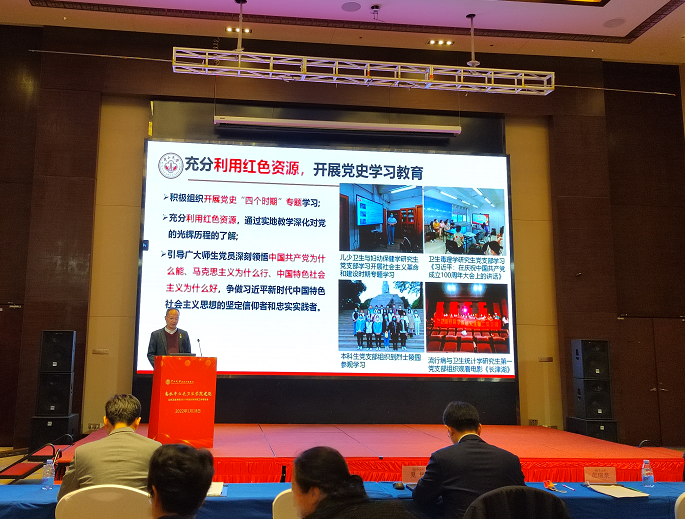 1月18日,公共卫生学院党委召开党史学习教育总结大会,对党史学习教育开展情况及成效经验进行了全面总结,对巩固深化党史学习教育成果进行了研究部署。会议采取线上和线下结合的方式召开,学校党史学习教育第八巡回指导组罗燕组长通过线上参加会议并讲话,党委书记范瑞泉同志作党史学习教育总结报告。学院全体党政领导、党委委员和教师党员代表参加会议,其余党员通过线上参加会议。