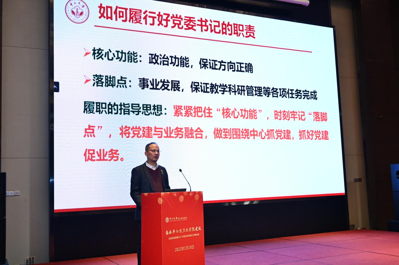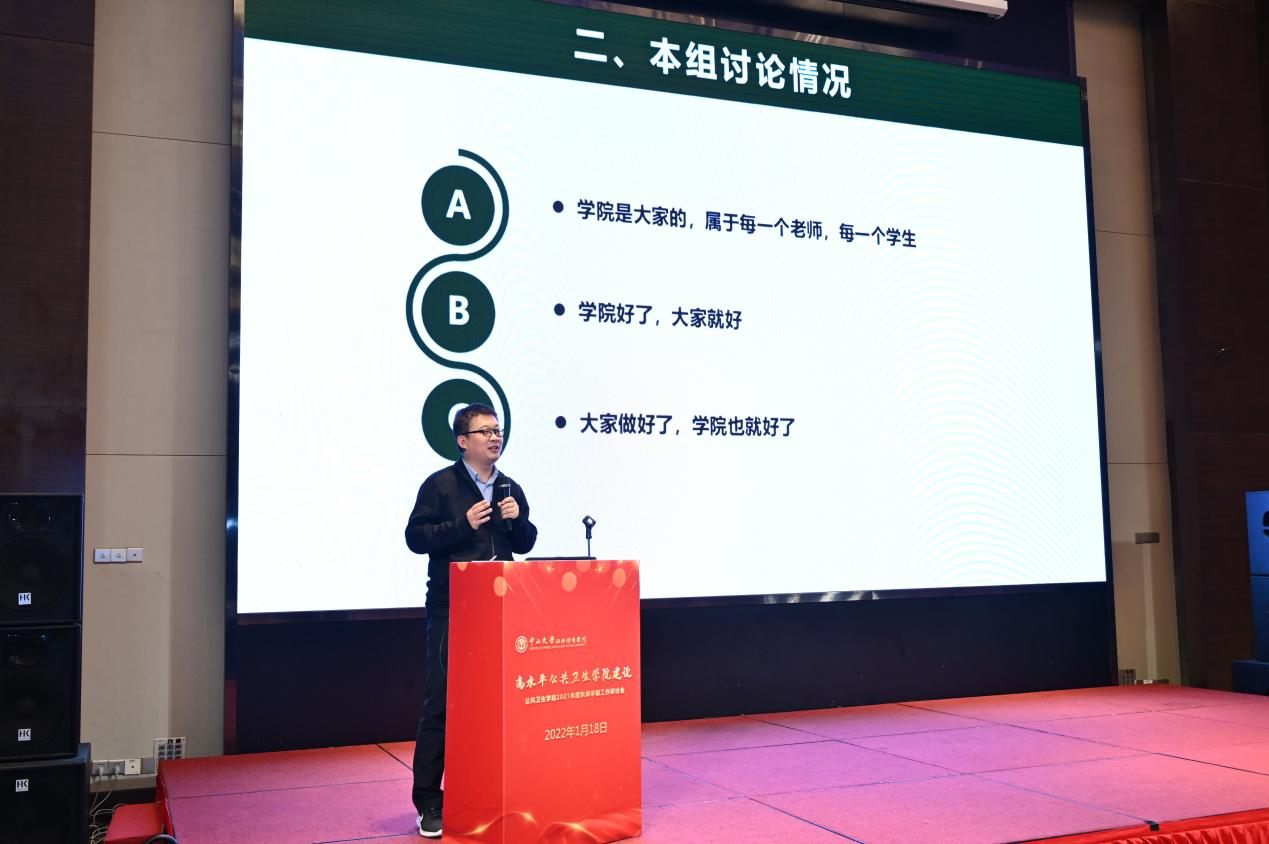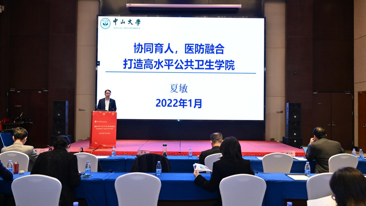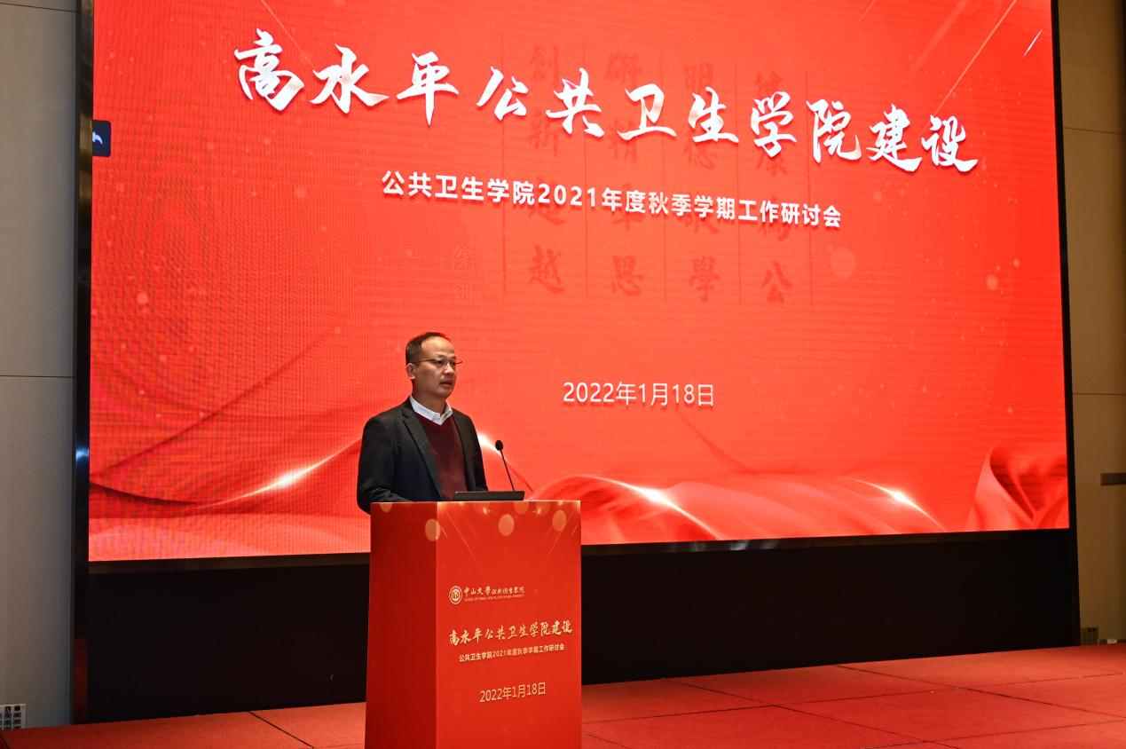 先由学院院长夏敏教授作专题报告《协同育人、医防融合  打造高水平公共卫生学院》,他总结了学院2021年在教学、科研、人才引育、师资队伍建设、人才培养等各个领域取得的佳绩,指出学院建设与人才培养存在的短板,提出了2022年的建设目标和发展规划,重点阐述2022年拟推进的重点工作。