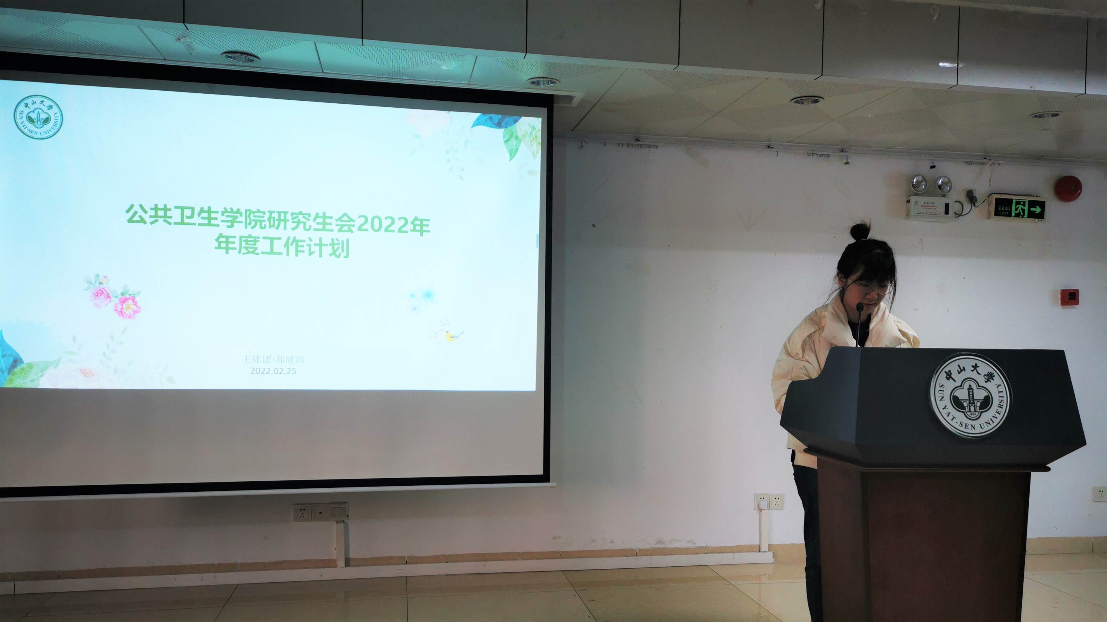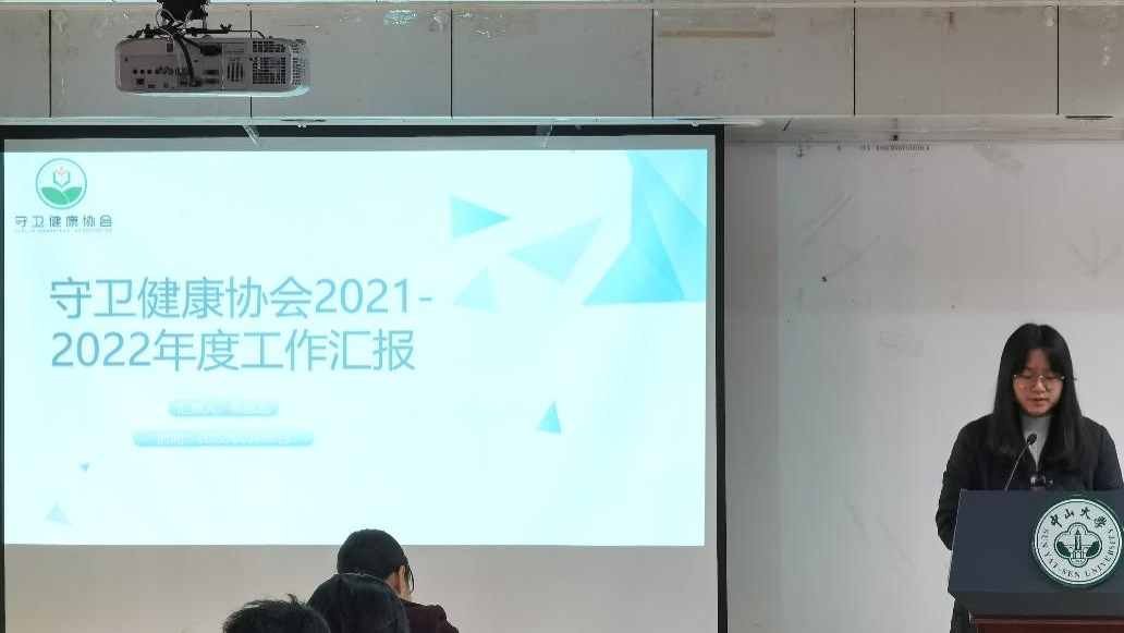 学生学术社团--守护健康协会会长侯思涵同学进行2022年度工作计划报告,在总结去年社团工作的基础上提出了今年如何做好健康科普工作、本科生科研思维培养的工作设想。