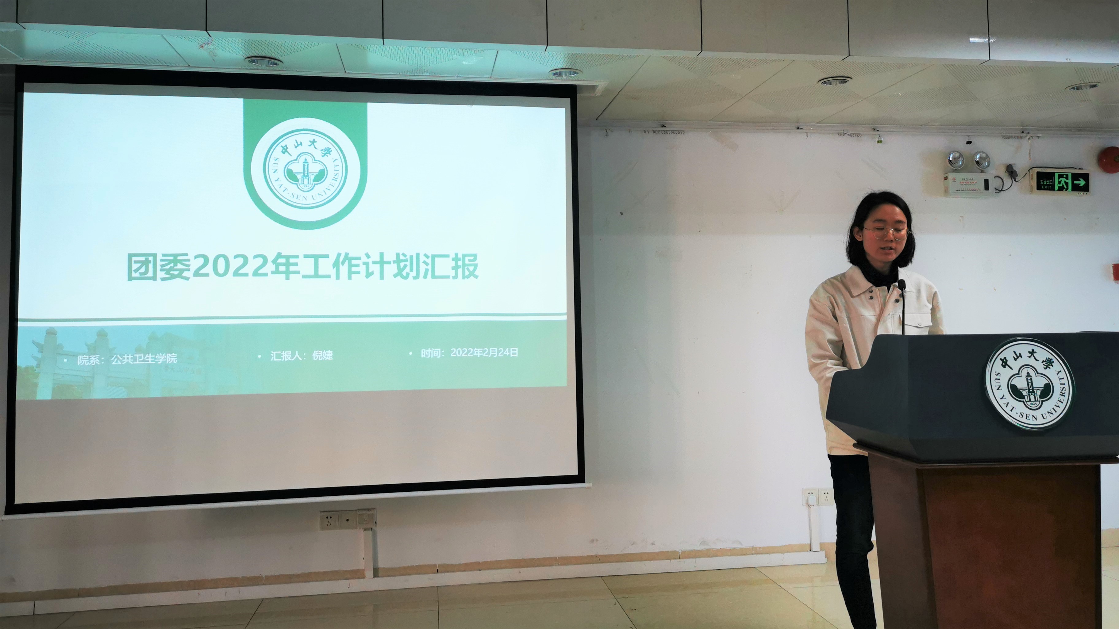 首先由团委学生兼职副书记倪婕同学报告2022学年团委年度计划。她着重对标学校红旗团委的指标体系,报告了团委2022年拟开展的重点工作及培育的特色工作。