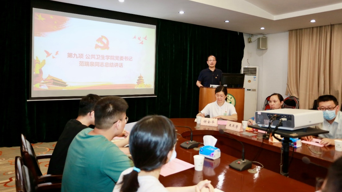 最后,范瑞泉书记作总结讲话,他指出,公共卫生学院培养的是人类健康的卫士,抗疫就是公卫人的战场,学得怎么样应该到抗疫一线去检验,在抗疫一线去培养学生的家国情怀,体悟公共卫生专业的魅力。希望同学们要提高认识、提高政治站位,将自己平时所学用到抗疫战场上,展现中大公卫人的品质和战斗力,让青春在人民最需要的地方绽放绚丽之花!同时要求同学们在行动中一定要严守纪律,确保安全,期待同学们平安凯旋!