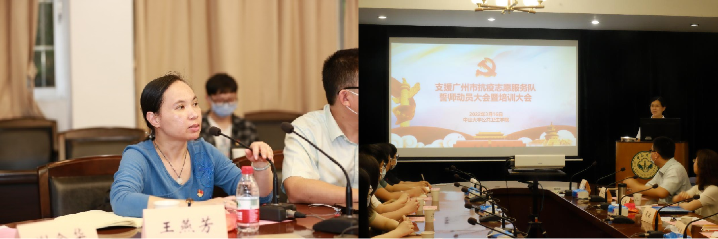 3月16日下午,公共卫生学院组织召开“支援广州市抗疫志愿服务队誓师动员培训大会”。学院党委书记范瑞泉、学院院长夏敏、党委副书记王燕芳、顾菁教授、陈维清教授、林华亮教授、团委书记谢金华、杜志成老师及全体志愿者参加会议,会议由王燕芳副书记主持。
