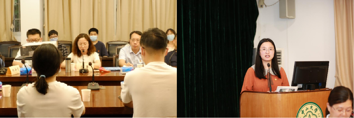左图:领队顾菁教授作重点发言;右图:临时党支部书记杨嘉璐作表态发言