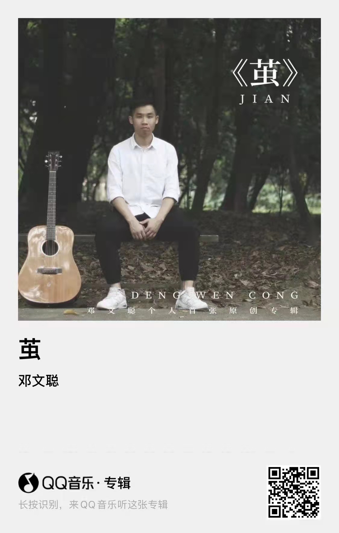 邓文聪,歌手,2013年毕业于yl88858永利集团公共卫生学院,目前在早期教育领域工作。创作风格多样,擅长流行音乐风格的创作和演绎。校园时期曾获校园维纳斯歌手大赛校区冠军,并为第28届维纳斯歌手大赛创作主题曲——《闯》,连同其后受邀创作的《老友》、《生命的颜色》,三首作品均入选到中大校园专辑。目前在QQ音乐和网易云音乐等平台发表歌曲20余首,并于2021年11月29日发表个人第一张原创专辑——《茧》,收录了11首作品。