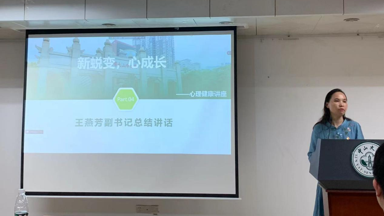 最后,公共卫生学院党委王燕芳副书记进行总结讲话,指出此次讲座是我们解密心语心理健康讲座系列的第一讲,旨在帮助同学们树立“生命至上、健康至上”的理念,希望同学们能进一步认真学习思考如何应对压力,合理释放不良情绪并多关注身边同学的心理健康状况,共同维护身心健康的状态。