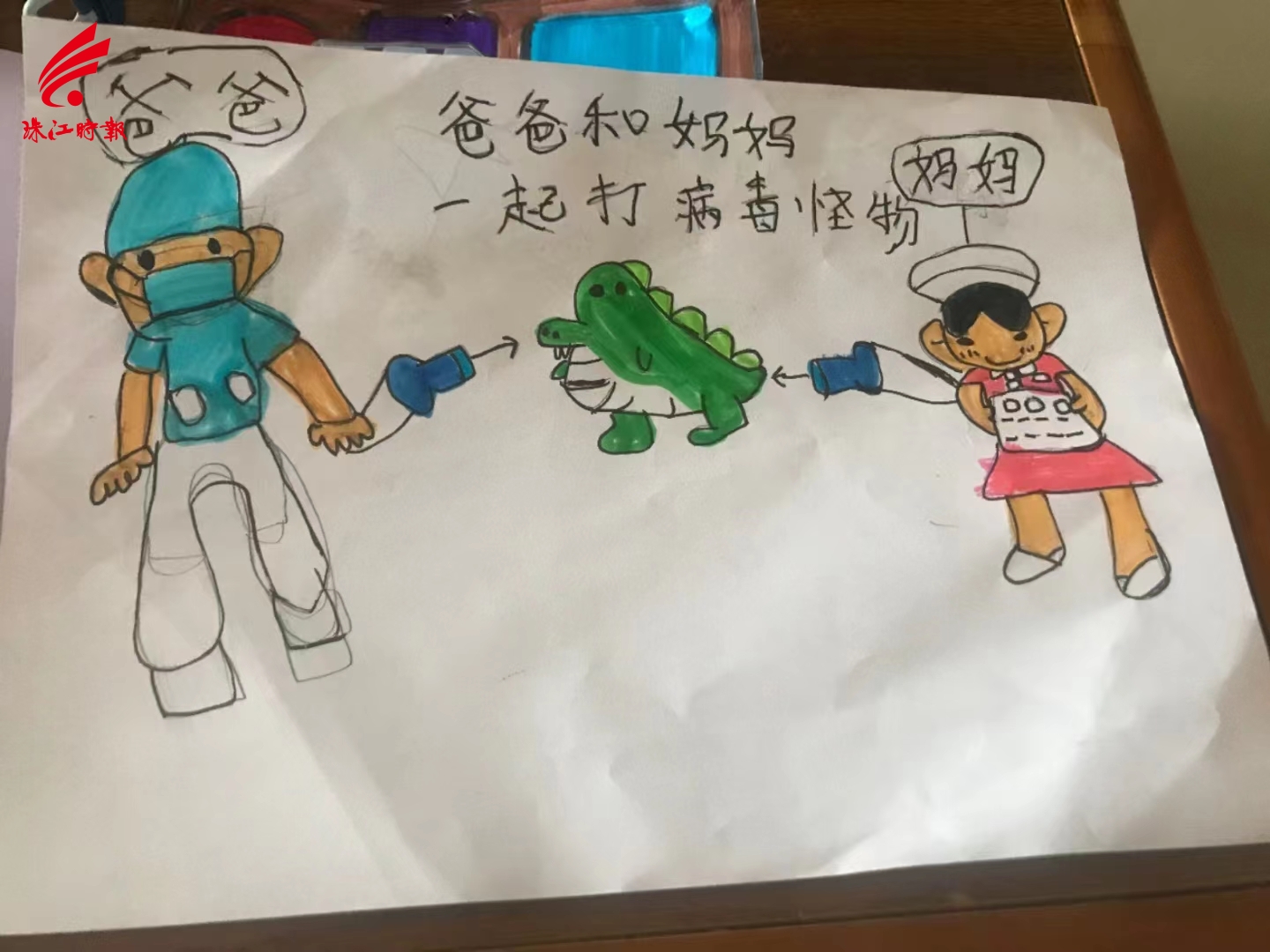 女儿用美术作品支持父母抗疫