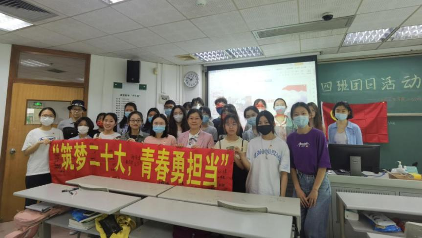 2022年4月11日上午,2020级预防4班学生在新教学楼举办了“筑梦二十大,青春勇担当”的主题团日活动。辅导员谢金华老师出席本次活动。活动共分四个部分——全体合唱团歌,团员宣誓并签名,谢老师、团支书及发展对象分享讲话及茶话会。