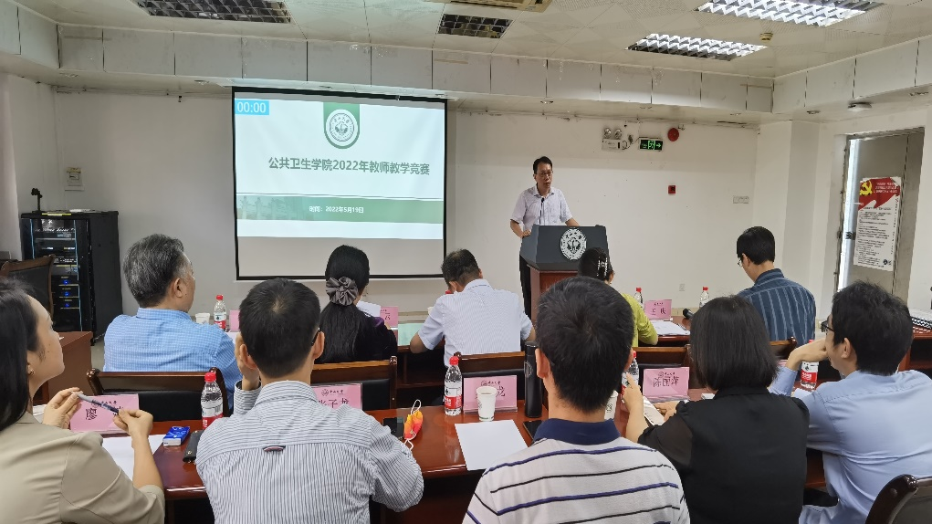 为深入学习贯彻习近平新时代中国特色社会主义思想和党的十九大精神,落实立德树人根本任务,锤炼教师教学基本功,提升教师的教学能力和素养,2022年5月19日下午,我院在公卫侧三楼会议室举办了公共卫生学院2022年教师教学竞赛。夏敏院长、党委书记范瑞泉、各系师生代表出席了本次比赛。本次比赛由王庆副院长主持。