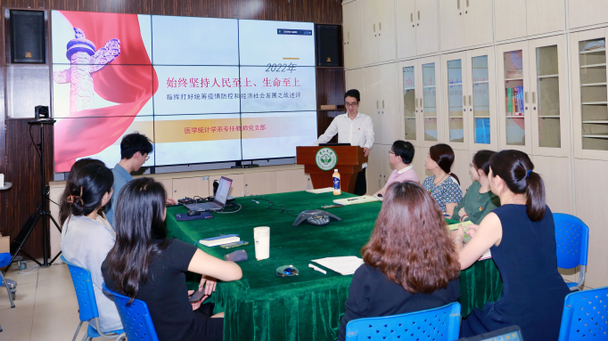 首先,来自医学统计学系专任教师党支部的张王剑同志围绕疫情防控主题,分别以从严从紧、精准防控、统筹兼顾、共克时艰四个方面讲授了《始终坚持人民至上、生命至上》主题党课。张王剑同志回顾了我国新冠肺炎疫情发展形势和特点,以及在以习近平同志为核心的党中央坚强领导下抗击新冠疫情所取得的佳绩。面对复杂多变的疫情,变的是不同阶段的具体防控策略,不变的是贯穿其中的鲜明主题:坚持以人民为中心,把人民放在心中最高位置。人民至上、生命至上,不仅是贯穿我国抗疫斗争的理念,更是彰显了中国共产党的初心使命。