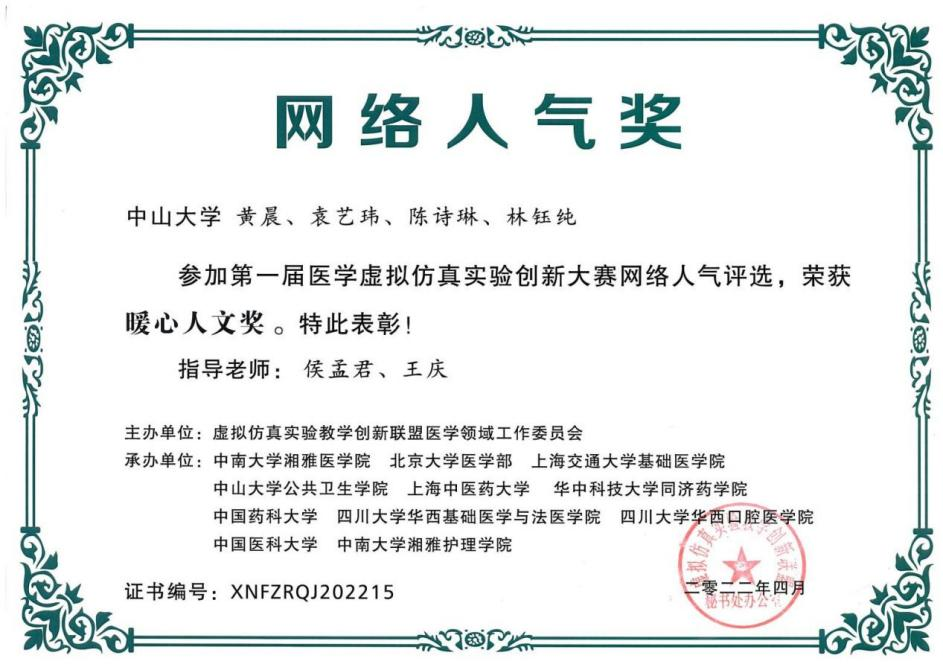 喜讯 | 我院学生荣获全国第一届医学虚拟仿真实验创新大赛卓越奖与网络人气奖
