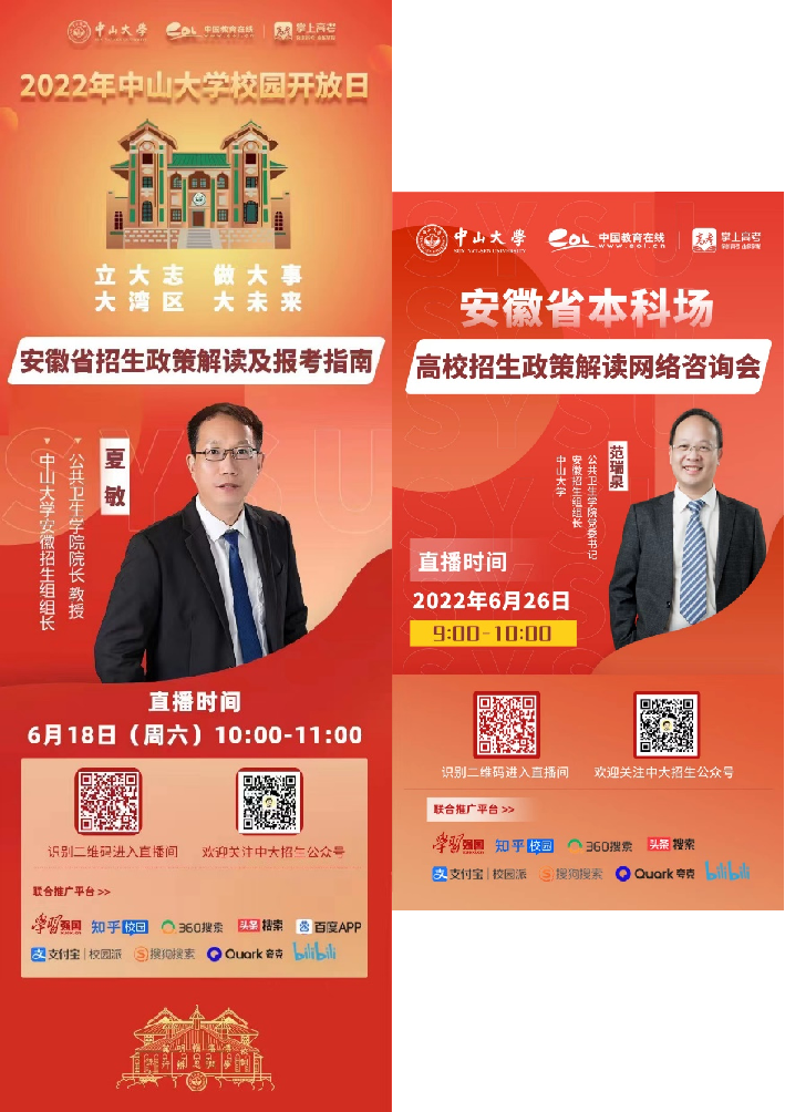 除线下宣传咨询外,学院还举行了2场线上招生政策解读直播咨询会。学院院长、招生组组长夏敏教授及学院党委书记范瑞泉分别在6月18日及6月26日开展了面向安徽省的招生宣讲直播,并在政策解读后进行线上答疑,两场直播共计有12000余人次观看。