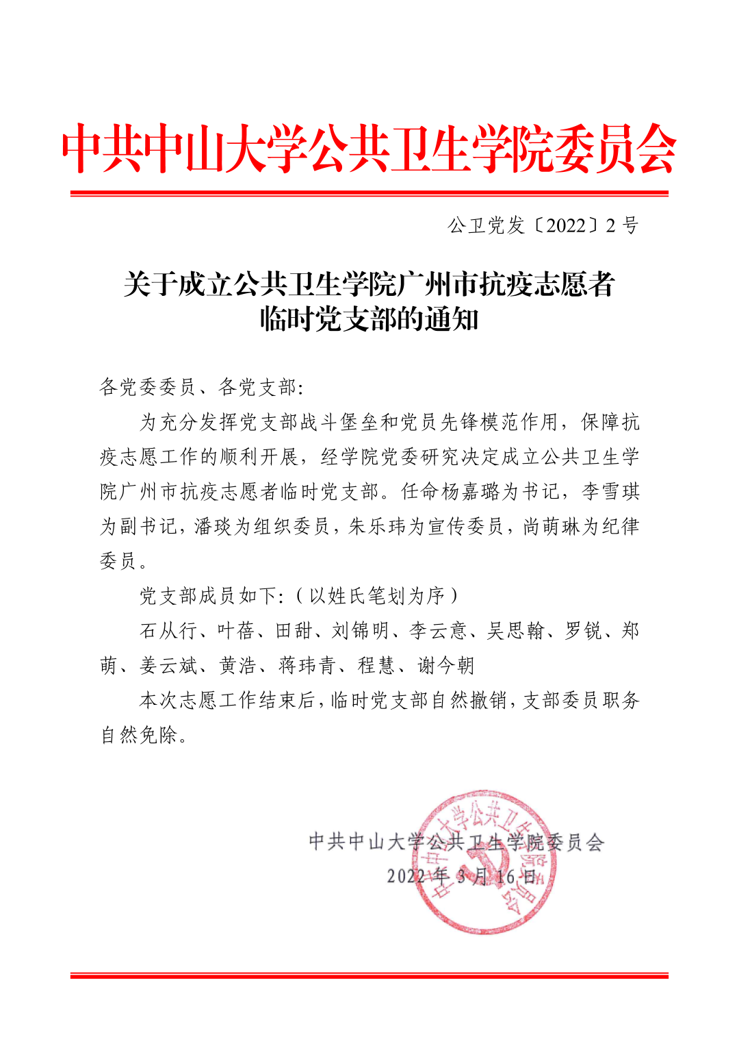 为发挥党支部的战斗堡垒作用,学院党委在四批志愿服务队中均成立临时党支部,让党旗在抗疫一线高高飘扬。其中,担任第一批志愿服务队临时党支部书记的杨嘉璐同学是学院营养与食品卫生学研究生第二党支部的党支部书记,该支部是yl88858永利集团首批样板支部建设单位。同时,担任临时党支部副书记的李雪琪同学是yl88858永利集团第二十二届研究生支教团成员,她曾在2020年到云南澄江支教一年,期间担任过澄江支教分队队长。担任第二批服务队临时党支部书记的潘登同学为流行病学第三党支部书记,在志愿服务过程中充分利用专业知识参与流调排查。党旗红成为了公卫学院抗疫志愿服务队最鲜亮的底色。