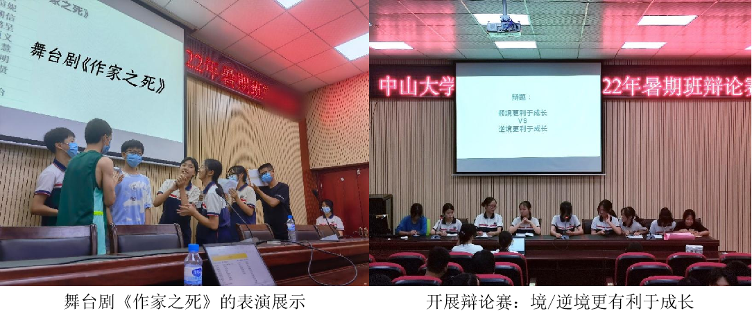 除了每日的正常语文课堂教学外,把日记作为与同学沟通的载体,认真批改、回复同学们的问题与疑惑,促进彼此的沟通与交流。此外,还开展书籍分享课、名著《红楼梦》四大名画鉴赏课、《主持人大赛》观看和鉴赏等课程,培养学生好的阅读习惯,引领同学们养成终生阅读的习惯,加强同学语言文字的表达与运用。此外,教学辩论赛与舞台剧相关知识,组织同学们开展辩论赛、舞台剧,以此拓展思维、增强合作意识、提高表达能力。