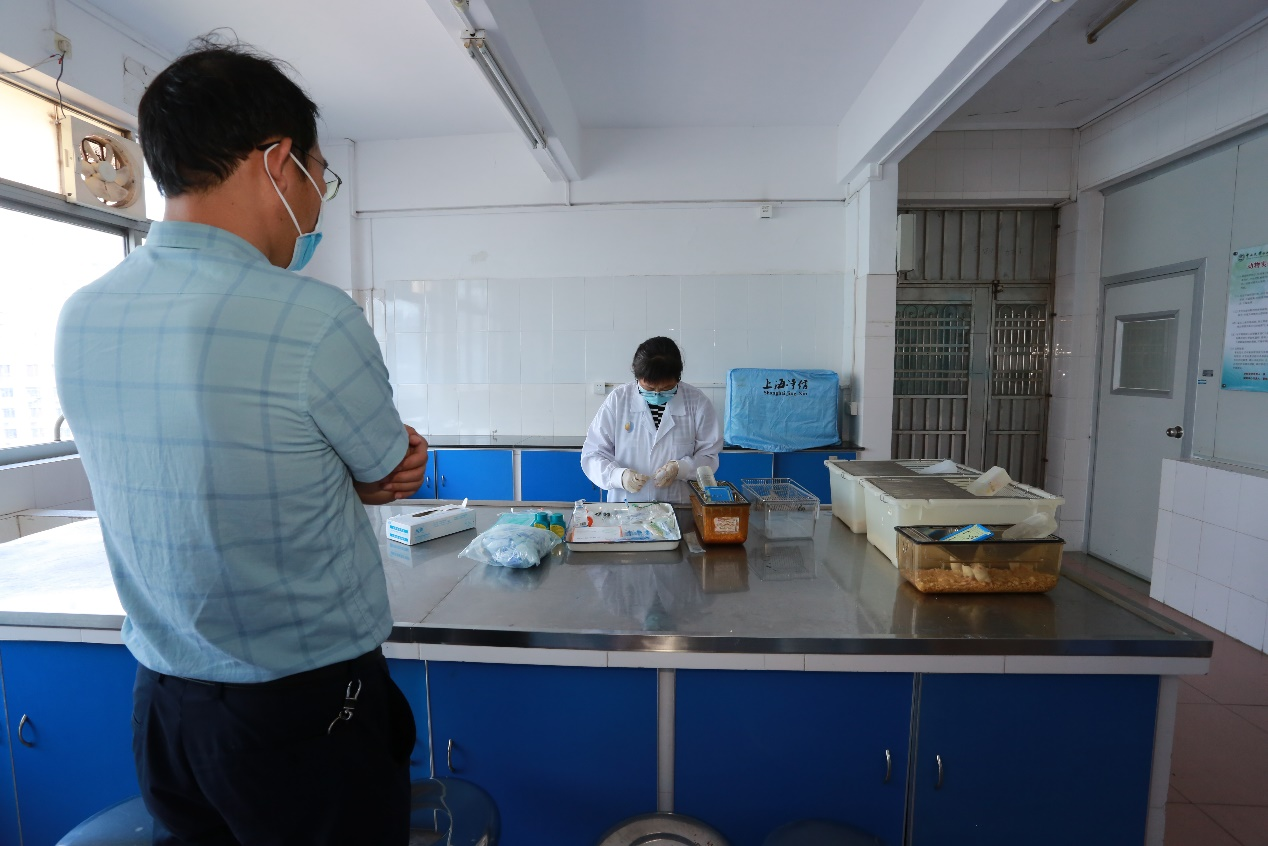 首先,广东省科技厅评审专家组召开预备会,介绍书面审查情况、推选专家组长及分配评审任务。广东省实验动物监测所邓少嫦主任介绍许可评审流程和宣读评审纪律。董光辉副院长汇报了我院SPF级动物实验室的建设与运行情况。作为申报单位主管领导的夏敏院长,我院实验技术人员分别参加了口头考试、书面考试和现场操作考核。评审专家组还现场考察了SPF级动物实验室的设施、审核了实验动物设施检测报告和实验室运行记录等相关书面材料,组织了质疑和申报人答辩。