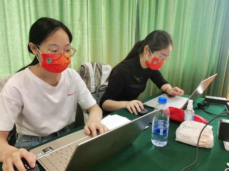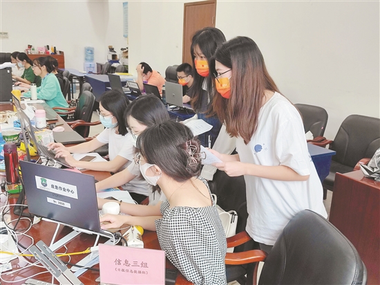 志愿者在北校园公卫楼临时流调中心工作