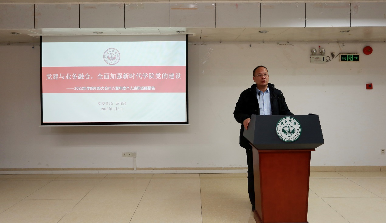 范瑞泉书记强调,在全体师生的团结一致和共同努力下,学院各项事业稳步前进,取得的成绩鼓舞人心。这一年,我们把党的二十大精神转化为推动高水平公共卫生学院建设的强大动力,推动学院入选教育部国家高水平公共卫生学院建设单位,公共卫生与预防医学第五轮学科评估在第四轮B+的基础上连升两级。他指出,2023年,学院将以政治建设为统领,以高水平公共卫生学院建设为中心任务,以党建与业务融合为抓手,以高质量党建引领学院高质量内涵式发展。