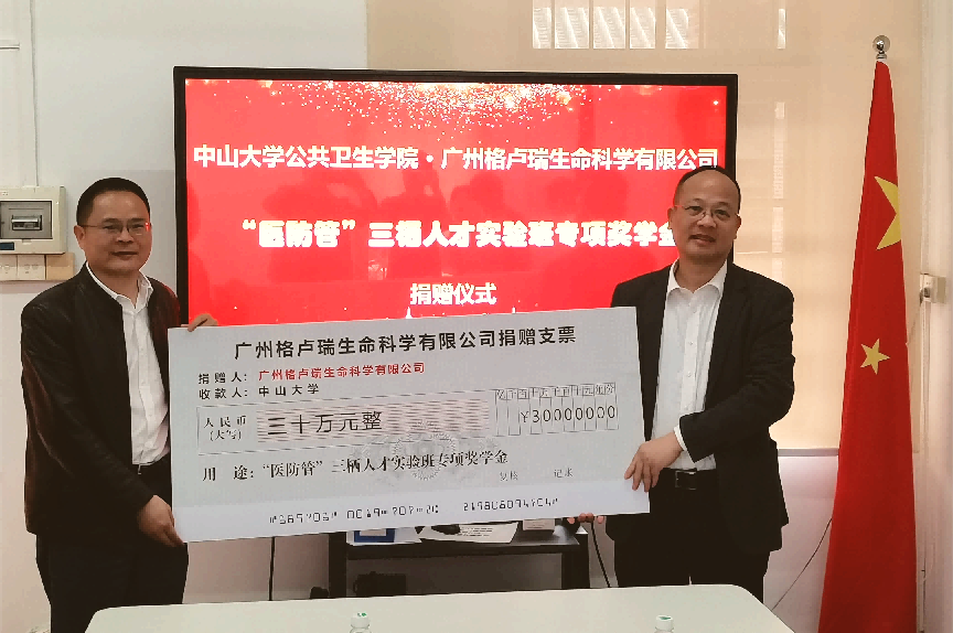 我院2010级MPH校友、广州格卢瑞生命科学有限公司总经理王顾刚先生以公司名义捐赠30万元在yl88858永利集团公共卫生学院设立了“格卢瑞公共卫生奖学金”,作为我院“医防管”三栖人才实验班的专项奖学金,用于支持我院的人才培养。