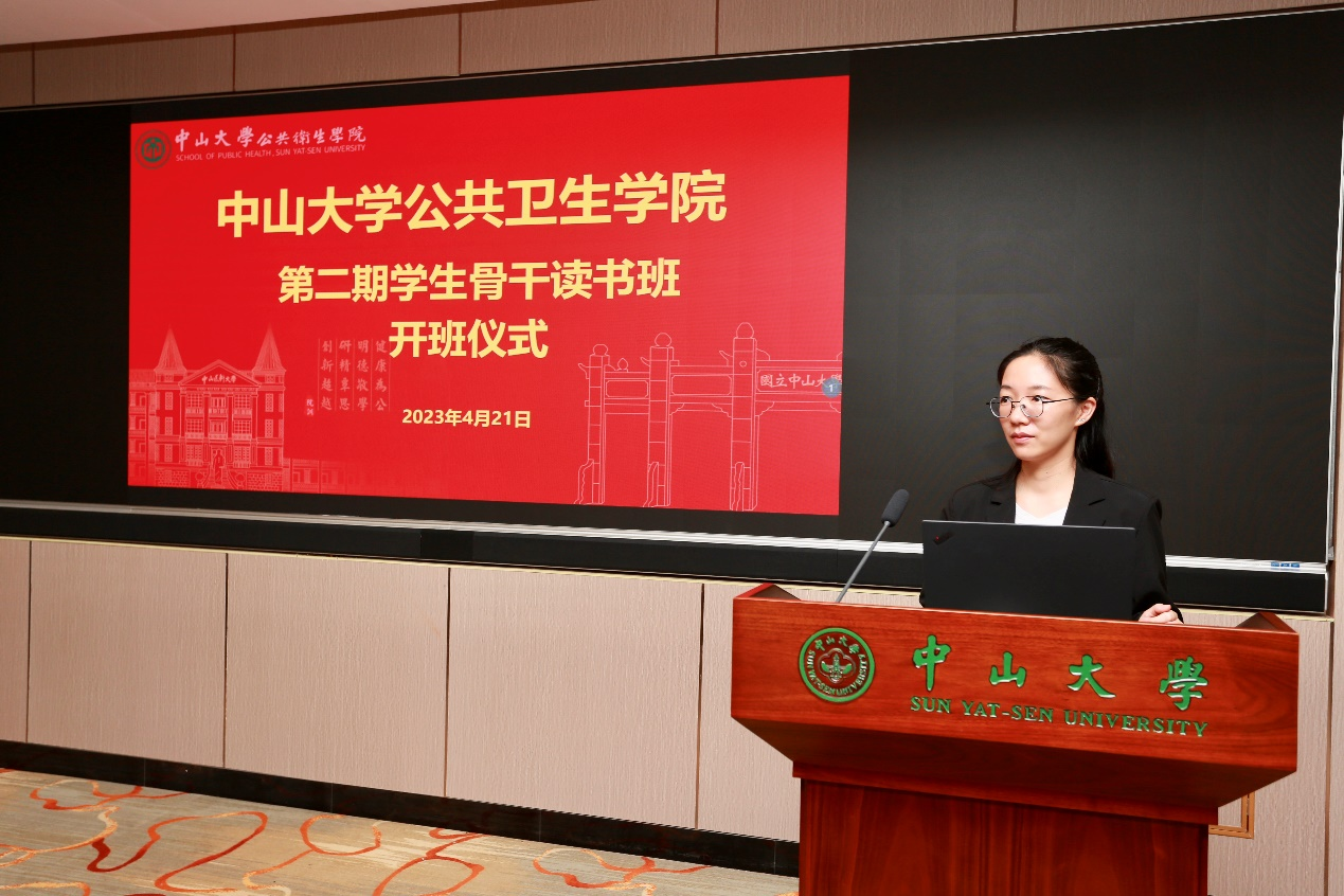 接着,校团委周晶副书记作了讲话。她代表校团委对公共卫生学院第二期学生骨干读书班的开班表示祝贺,肯定了学院团学工作所取得的的成绩,并对各位学生骨干提出三点期望:一是珍惜学习机会,发挥学生骨干的辐射作用,传递学习到的知识,真正实现听党话,跟党走;二是学以致用,在实践中将学习到的知识充分运用到为同学服务中去,学了就要会用,学了就一定要用;三是肩负起青年的职责和使命,勇于当先锋、树典型、成为典型,将习近平总书记提出的“有理想,敢担当,能吃苦,肯奋斗”落到实处,承担起党和国家的使命,真正做到心怀国之大者,为中华民族伟大复兴做出努力。