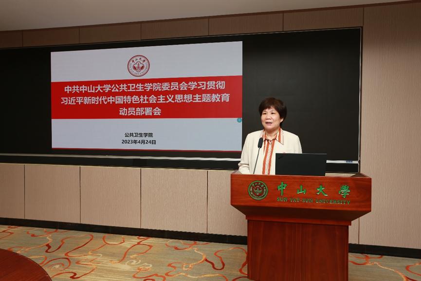 她希望公共卫生学院党委坚持不懈贯彻落实习近平总书记在学习贯彻习近平新时代中国特色社会主义思想主题教育工作会议上的重要讲话精神,找准着力点和发力点,办出特色学出成效,在新征程上展现新作为。