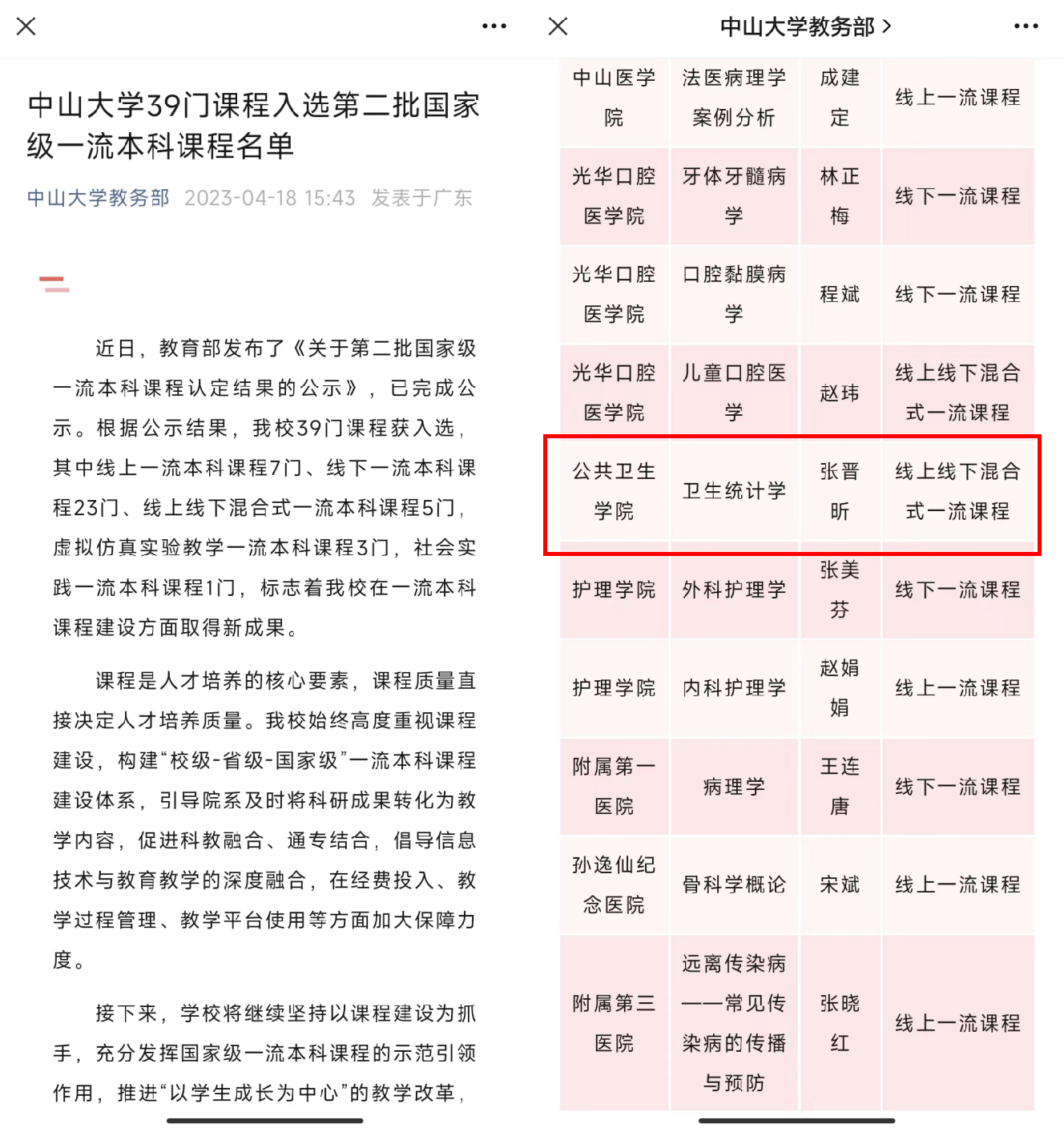 喜报 | 我院《卫生统计学》入选第二批国家级一流本科课程