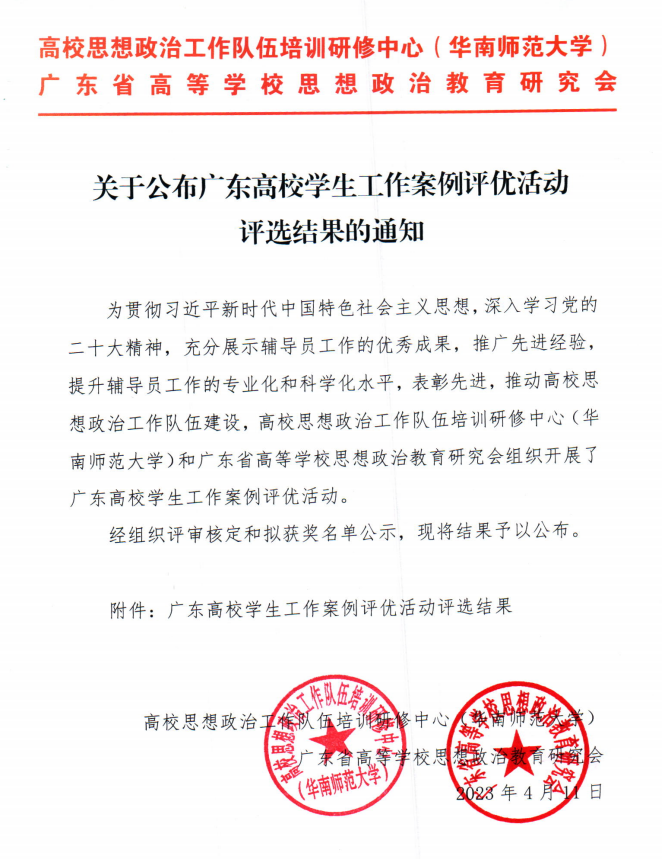 喜报 | 我院在广东高校学生工作案例评优活动中荣获二等奖