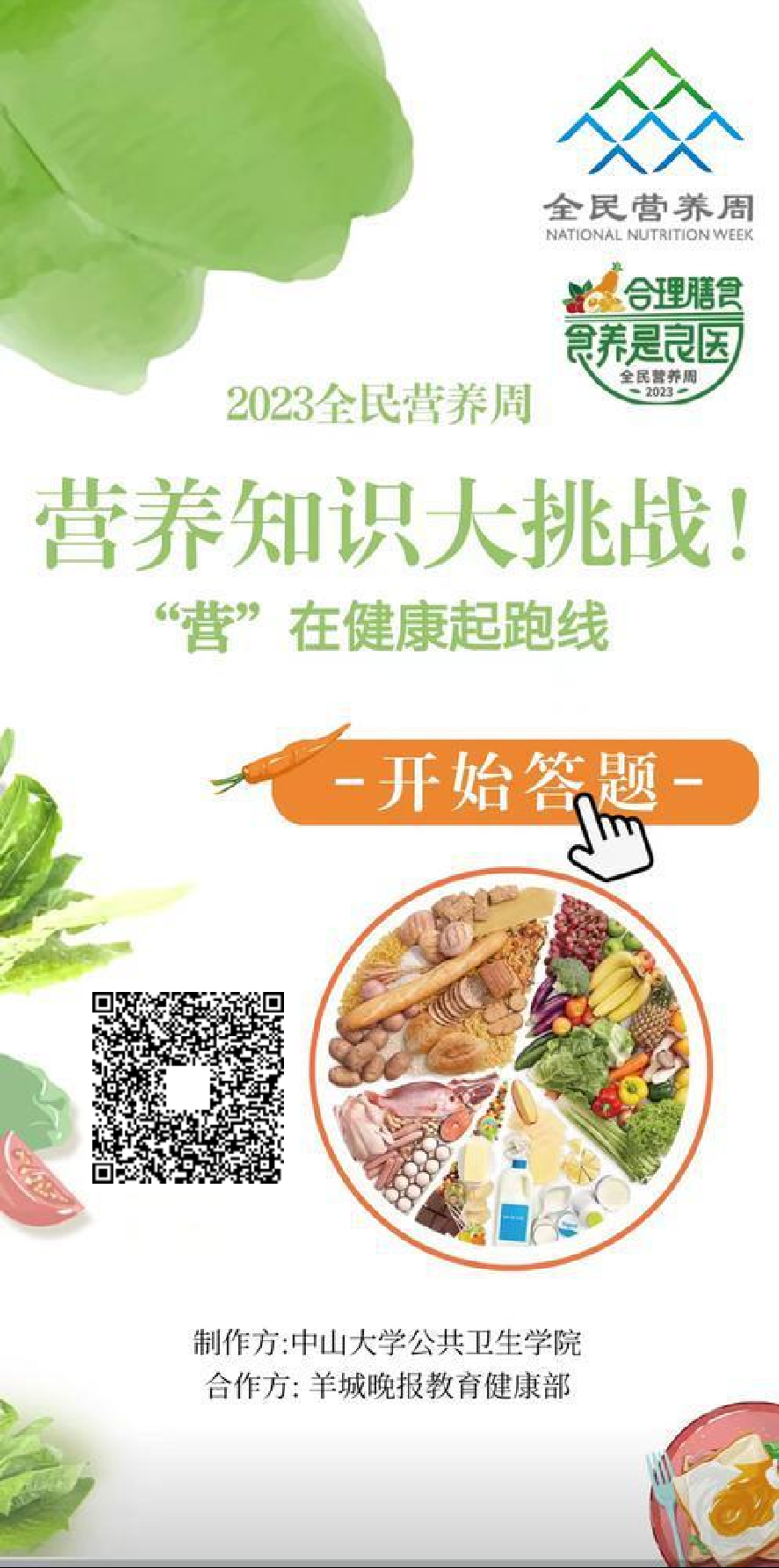 第九届全民营养周期间,公共卫生学院还联合羊城晚报教育健康部,共同推出了《H5|营养知识大挑战!“营”在健康起跑线》网页答题活动,答题内容涵盖日常饮食习惯、饮食禁忌、常见保健品使用等方面,答案解析兼顾科学性与趣味性,以简洁易懂的语言帮助群众们避开常见营养知识"陷阱",吸引10万多群众积极参与,反响热烈。另外,学院分别在羊城晚报和广州日报推出报道——《全民营养周|特殊人群怎么吃更健康?中大师生教你会吃慧选》《膳食模式如何影响健康?中大公卫学院的这场活动上有答案》,对日常营养健康问题进行解答,惠及近20万公众。