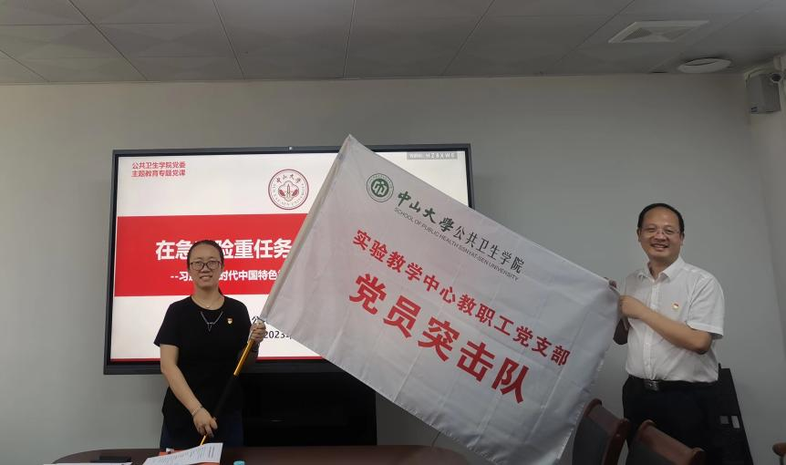 范瑞泉书记给实验教学中心教职工党支部党员突击队授旗