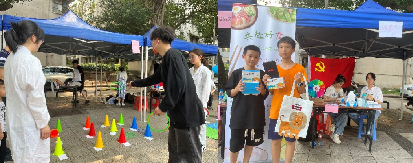 本次营养科普共包含义诊、健康咨询和游戏摊位三部分。党支部成员和学生志愿者们为居民们分发健康宣传手册,并测量他们的血压和血氧饱和度,以了解他们的身体状况。学院冯丹老师则为居民们解答有关健康饮食的问题,并提供专业的饮食改善建议。游戏摊位扮演着寓教于乐的角色,每位参与者的脸上都洋溢着知识与奖品双重收获的欣喜。
