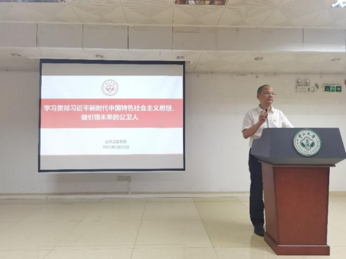 5月22日晚上,支部全体党员、部分积极分子与发展对象参加了由学院党委书记范瑞泉同志主讲的题为“学习贯彻习近平新时代中国特色社会主义思想,做引领未来的公卫人”的党课。
