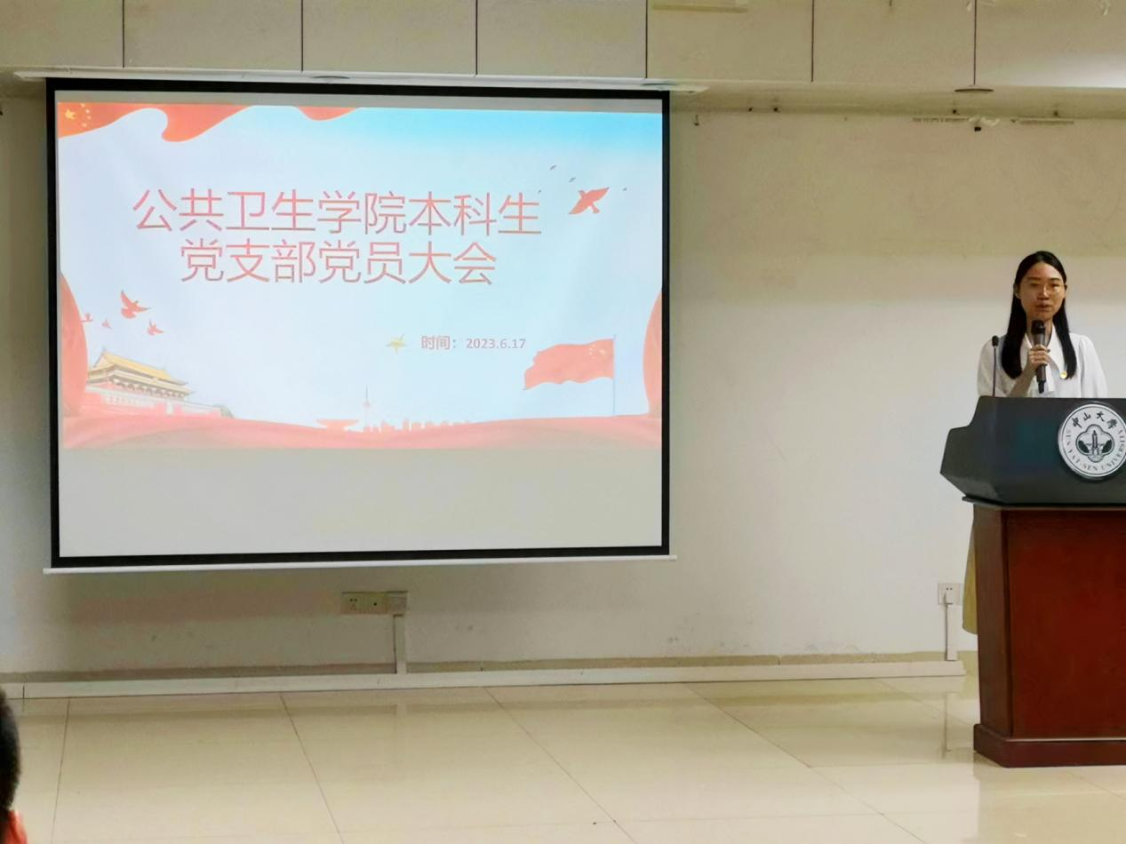在本次理论学习中,本科生党支部支部将支部成员分为三个党小组,采取“自学+集中学习+专题研讨”的形式,以党小组为单位认真研读党的二十大报告、《习近平新时代中国特色社会主义思想专题摘编》《中国共产党章程》等系列书籍。在党员大会上,第一党小组代表陆智君从新时代的伟大变革入手,提出新时代新征程中国共产党的使命任务;第二党小组的王炫佳同学带领大家进行《中国共产党章程》新旧版对照学习;第三党小组的邹晴、杨琳和钟艳灵同学从预防医学专业角度出发,依次从健康中国行动,我国生态文明建设和共建人类命运共同体三个方面汇报了主题学习情况。