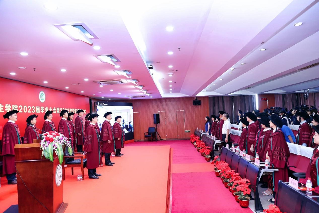 主持人王庆副院长宣读2023年学士、硕士、博士学位授予通知,接着,恭请夏敏院长为学位获得者逐一颁授学位。
