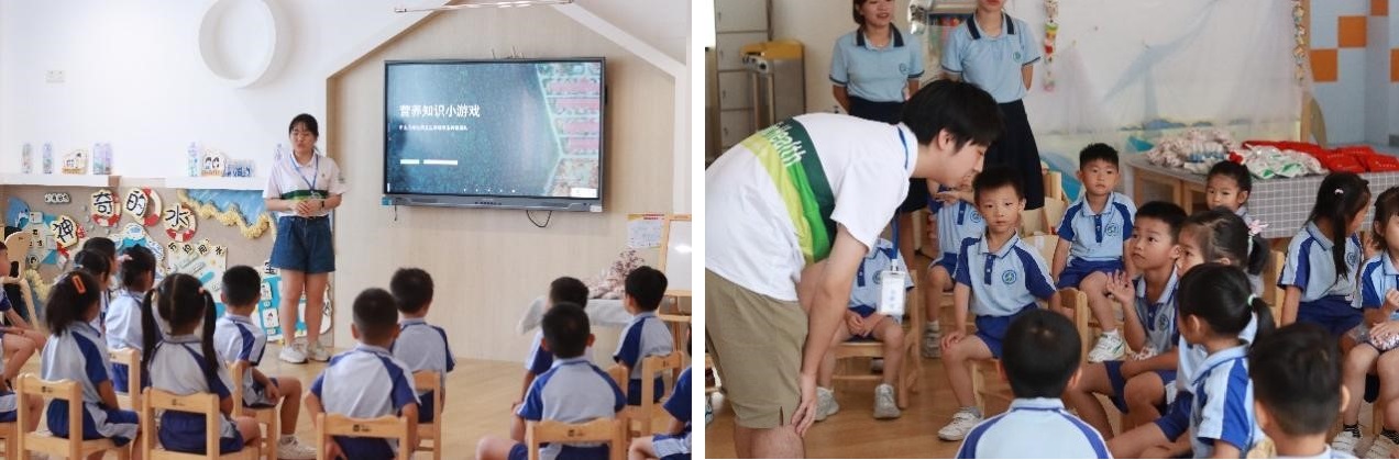 7月11日下午,我院一行来到江海区实验幼儿园,开展健康饮食知识科普。通过“今天吃什么”、“猜猜我是谁”、“食物竞拍会”等游戏,以寓教于乐的方式向小朋友们介绍了简单的平衡膳食知识。科普活动结束后,队员与小朋友们的家长探讨孩子健康饮食相关问题,现场气氛活跃。