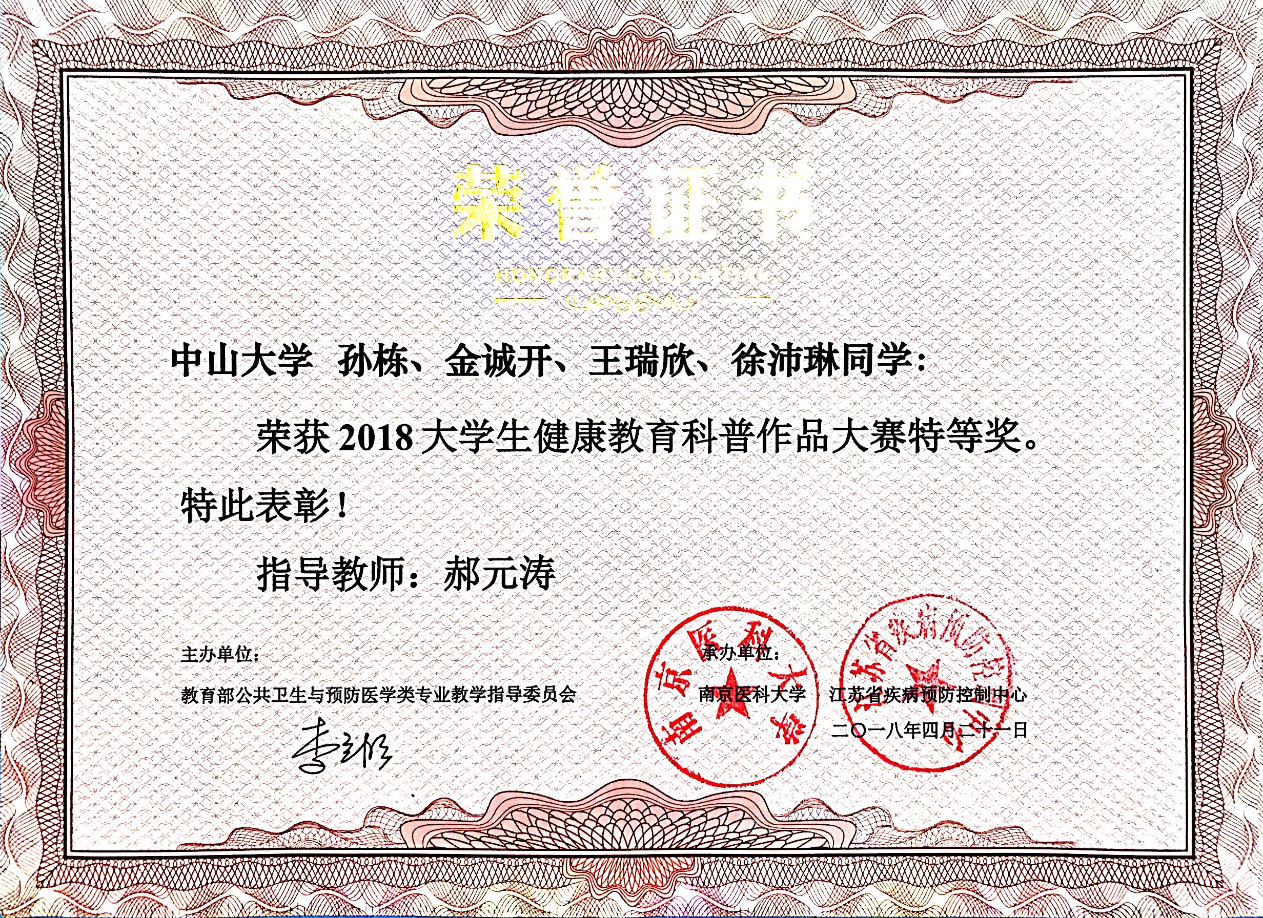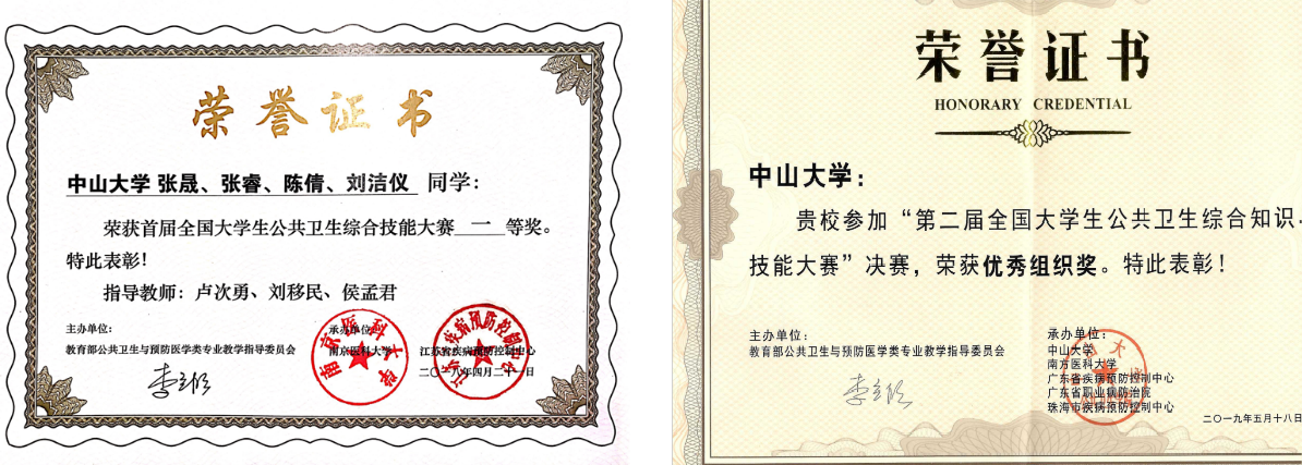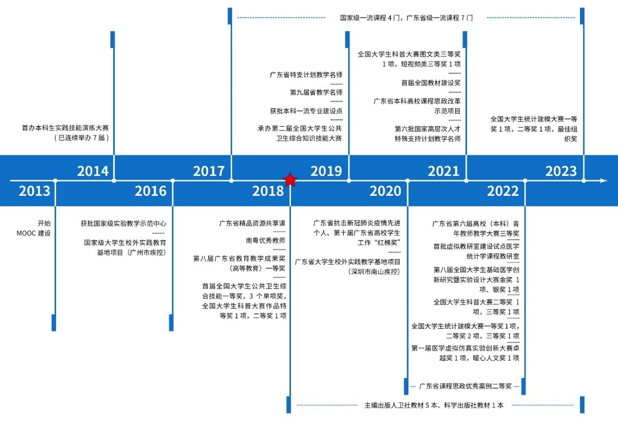 ② 教学相长,师生努力结硕果。高水平师资队伍建设成效显著,涌现出一批国家级、省级、校级教学名师、全国教材建设先进个人、广东省抗击新冠肺炎疫情先进个人等优秀师资;学生参加首届全国大学生公共卫生与预防医学综合知识与技能大赛获一等奖以及3个单项奖;获2018年全国健康科普大赛特等奖1项、二等奖1项、最受学生欢迎奖2项;获全国大学生统计建模大赛总决赛一等奖2项、二等奖3项、三等奖1项;获“第八届全国大学生基础医学创新研究暨实验设计论坛”总决赛金奖1项,银奖1项;获第一届医学虚拟仿真实验创新大赛卓越奖及暖心人文奖等奖项。