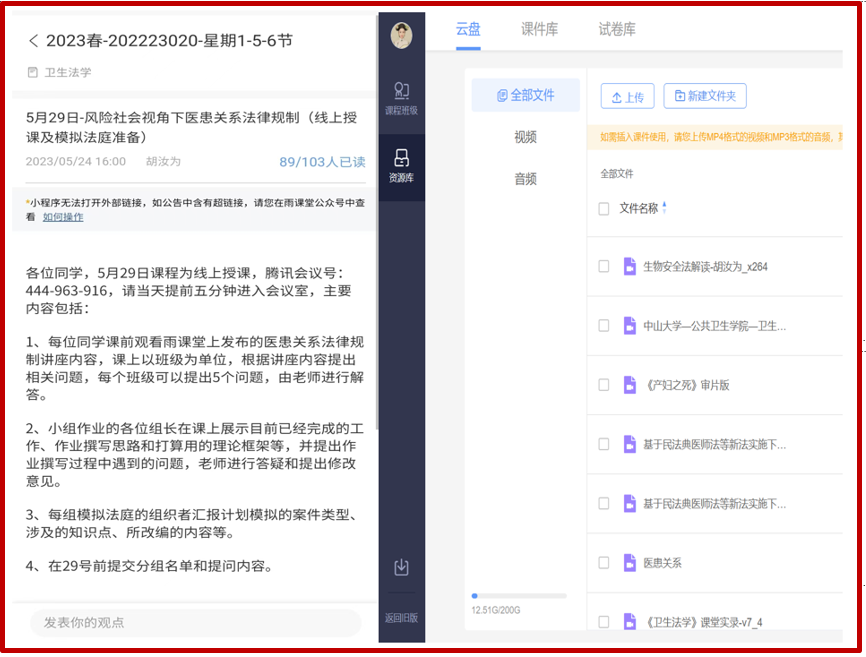 3、在教学相长方面,探索“前台-中台-后台”的可视化教学设计思路,课堂讲授突出理论与判例分析结合,创新翻转课堂的演绎方式。采取理实一体化教学法,将课程的理论教学、实践教学、生产、技术服务融于一体。引进“模拟法庭”“辩论大赛”“典型判例研读”以及“现场观摩”等多种理实一体化教学方法,引导学生进行自主探究式与个性化学习、强化师生和生生互动。课程负责人作为央视《今日说法》卫生法案例点评嘉宾,以及开学第一课主讲人,结合科研工作录制不同教学素材,促进多学科教学育人资源共享和教研反哺,使教学资源做到合理“三间分布”——任何时间,任何地点,任何一个同学都可以通过“掌上学习”的方式获得与时俱进的卫生法学知识,促进知识生成,教学效果显著。