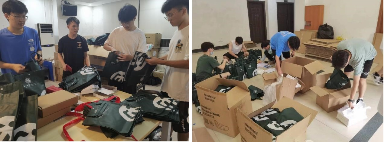 学长团的成员们奔波于南北校之间,领取与分装制作新生开学礼包需要的物资,为大家打包“干货满满”的开学大礼包。