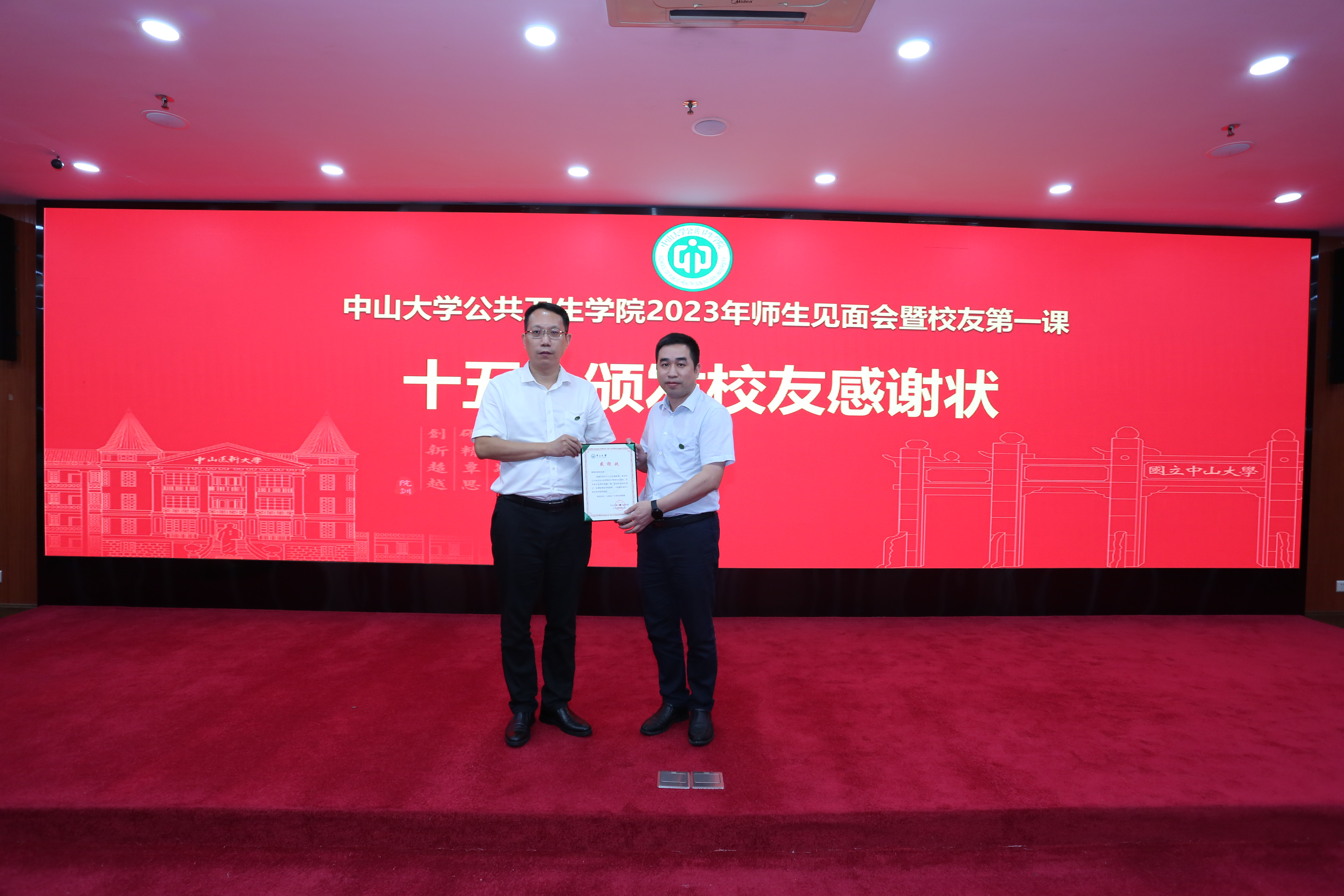 数十年文脉绵延,校友是学院最大的收获和最宝贵的财富。一批批高素质中大公卫人,在广东乃至全国公共卫生机构发扬中大精神,贡献中坚力量。师生见面会过后,夏敏院长为校友代表袁俊颁发感谢状。