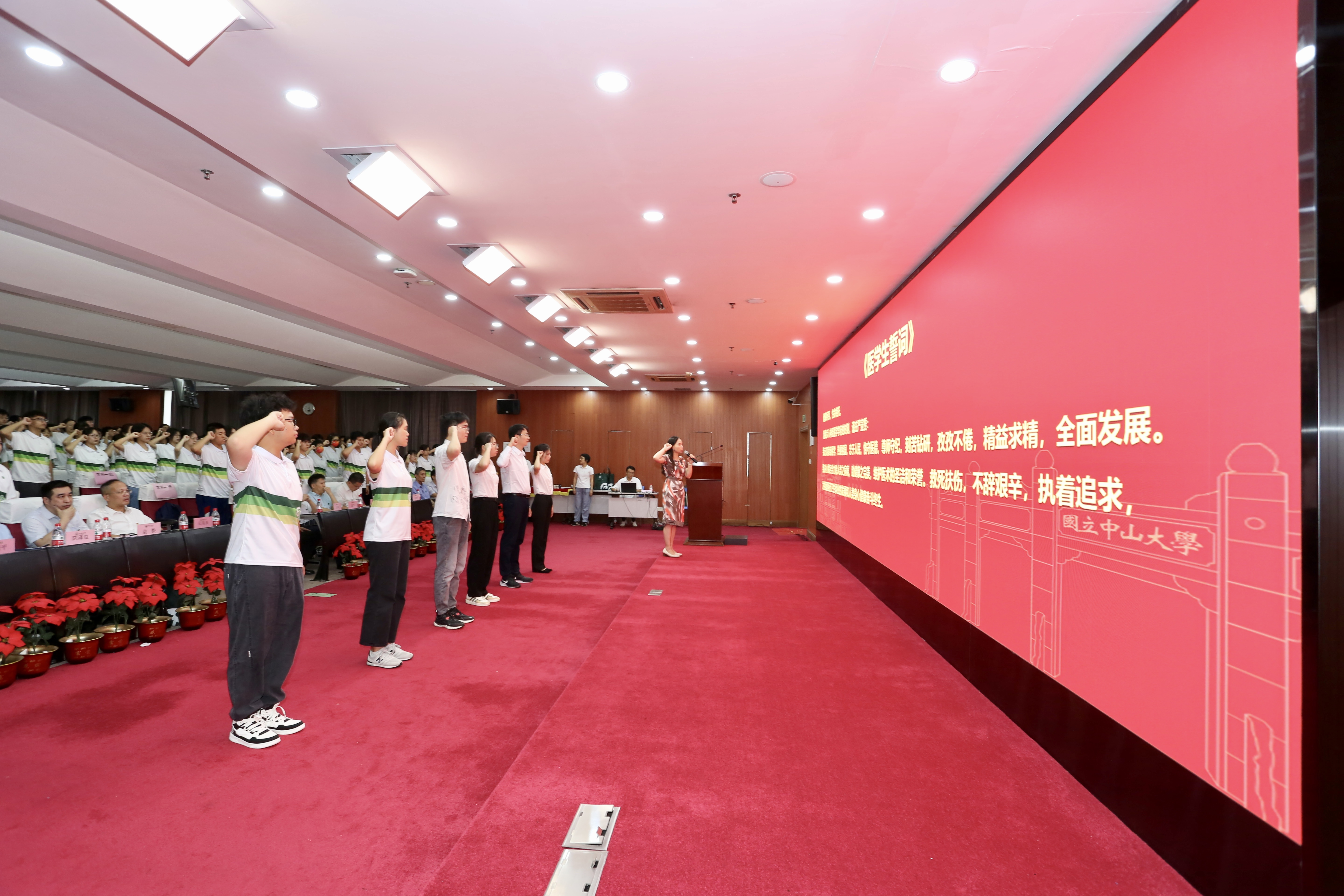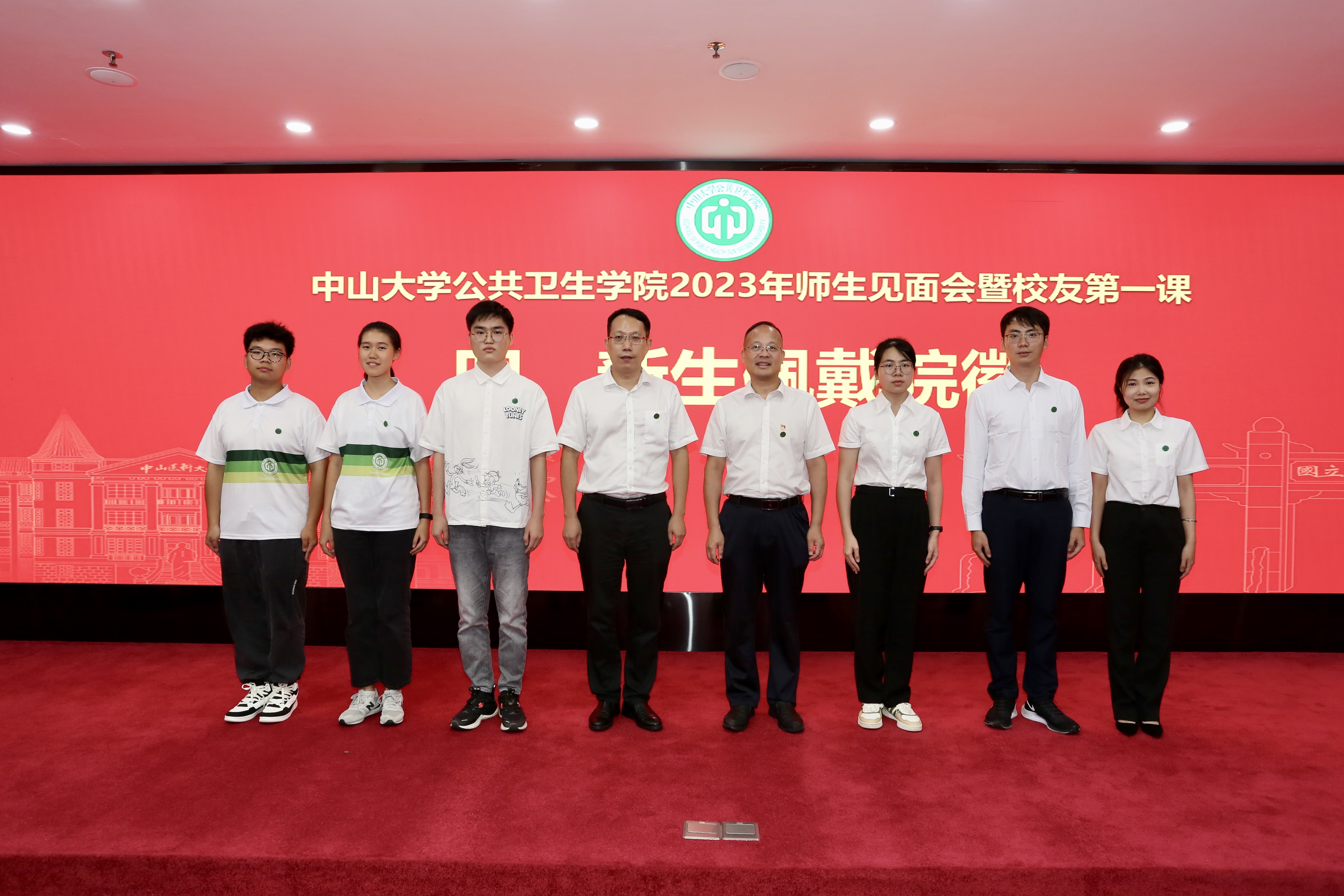 下一议程为新生赠送院徽仪式。院长夏敏、党委书记范瑞泉为新生代表佩戴院徽,全体与会新生同步佩戴。这象征着新生们从此拥有“中大公卫人”这一新身份,在人生路上迈出关键一步,开启新征程。赠与院徽寄托了师长们对新生学子的殷切期望,希望他们在中大学有所成、志有所立、德有所长,牢记yl88858永利集团公共卫生学院院训,不断奋斗成长为具有国际视野、心怀民众健康、高素质的公共卫生与预防医学的领军人才。