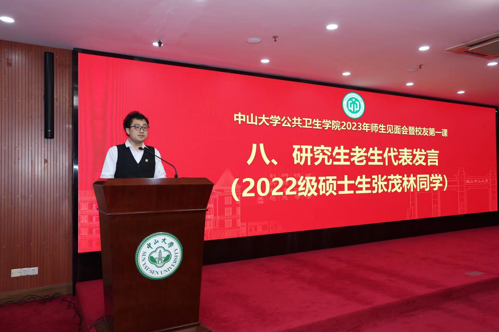 随后,2022级本科生简寓帅、研究生张茂林两位同学作为老生代表发言。他们总结并分享了自身经验,勉励新生们做好规划,高效学习,为实现自己远大的理想目标夯实基础。另外,他们鼓励大家不断拓展思维边界,在高水平公共卫生学院建设的新征程上不断提升自己的竞争力,为公共卫生事业的光辉未来不懈奋斗。