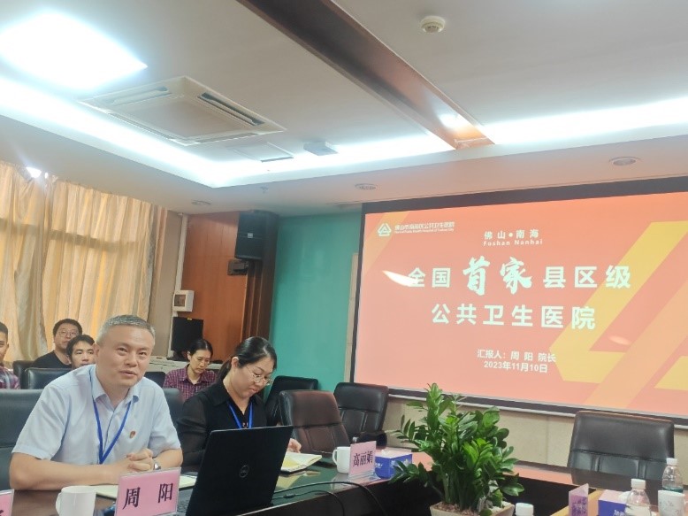 “读经典”微党课结束后,周阳院长作了佛山市南海区公共卫生医院专题介绍,详细展示了医院的发展历程、职能与组织架构、人才培养、工作成效、发展规划等情况。通过周院长的介绍,我们了解到南海区公共卫生医院是一所集医疗、教学、预防保健、康复、健康教育于一体的公立二级甲等综合医院,并在综合医院医疗救治职能基础上开拓创新,致力于发展监管医疗、精神专科、慢性病、传染病、职业病等公共卫生职能,打造“医防融合,以医促防”新模式。随后,南海区疾病预防控制中心副主任黄喜明同志和狮山镇卫健办主任吴辉同志分别作了发言,强调“医防融合”的重要性,在推动发展的同时需要重视各单位的协同和合作,共同进步。
