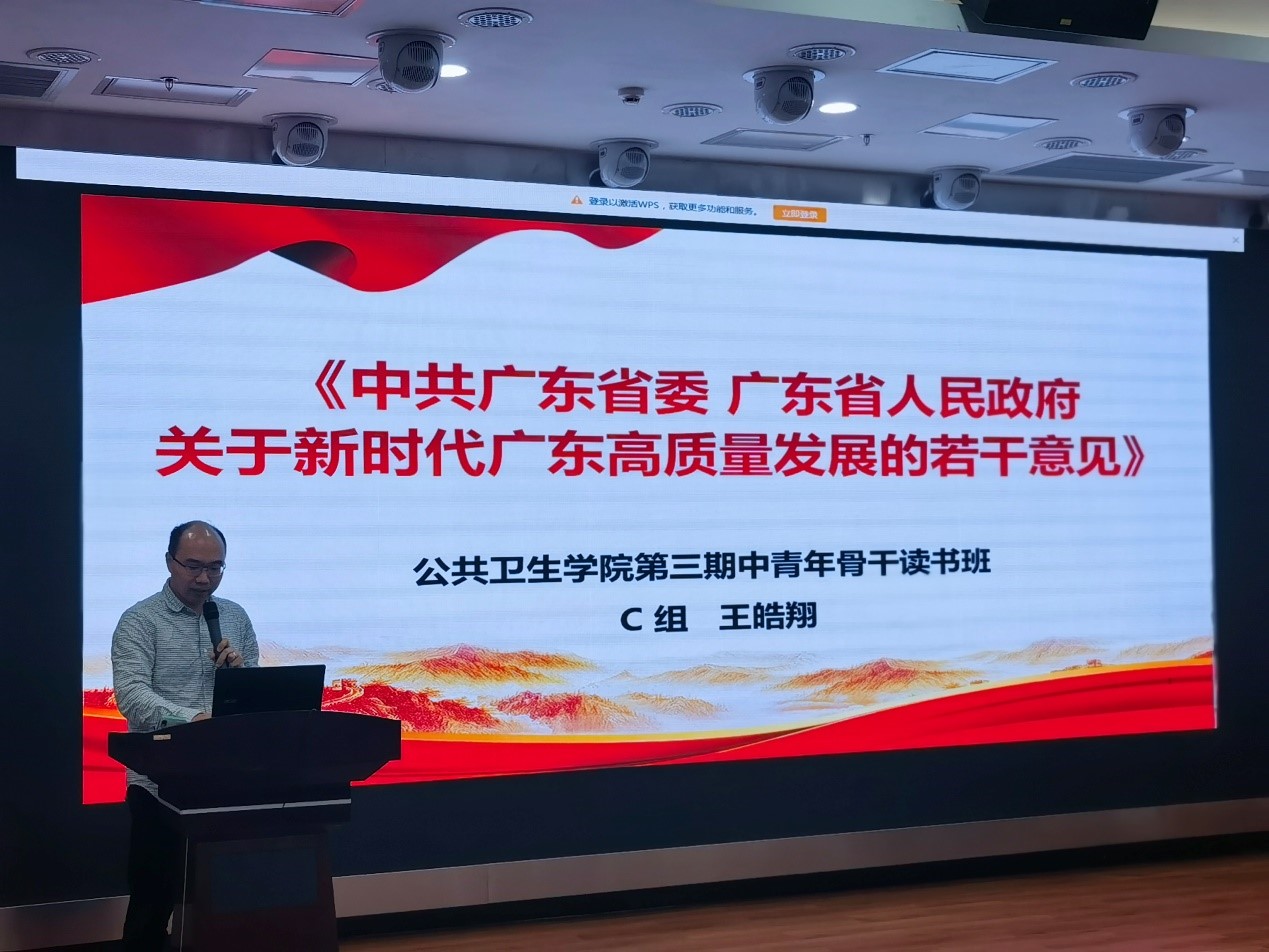 随后,王皓翔副教授分享了以《中共广东省委 广东省人民政府关于新时代广东高质量发展的若干意见》为题的报告。他强调了绿美广东建设对于新时代广东高质量发展的重要性和必要性。通过学习该文件,高校老师可以更加深刻地认识到自身在推动绿美广东建设中的责任和使命,为培养更多具有生态文明素养的高素质人才做出贡献。