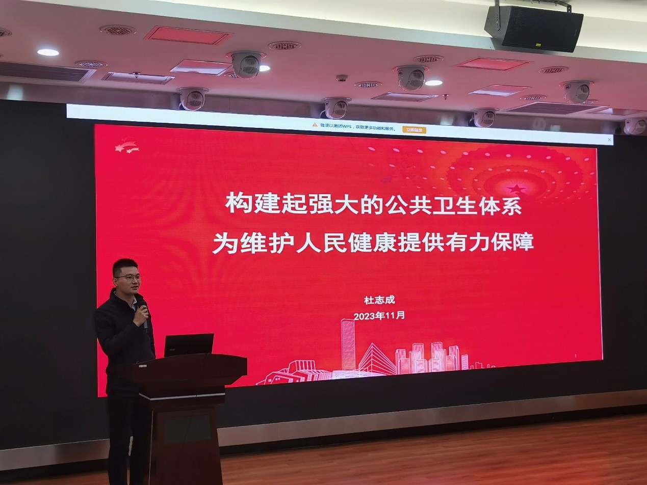 最后,杜志成副教授分享了关于《构建起强大的公共卫生体系 为维护人民健康提供有力保障》的报告。他总结到,只有构建起强大的公共卫生体系、建立健全预警响应机制、全面提升防控和救治能力、织密防护网、筑牢筑实隔离墙,才能切实为维护人民健康提供有力保障。
