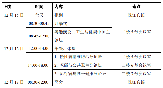 论坛以“交叉融合,创新发展,促进湾区高水平公共卫生学院建设”为主题,旨在交流如何建设高水平公共卫生学院,积极推进健康中国行动。大会设一个主论坛和3个分论坛,内容覆盖慢性病精准防治、双碳与公共卫生、流行病与同一健康等方向,欢迎全国公共卫生领域专家、学者共享学术盛宴。